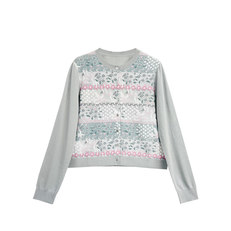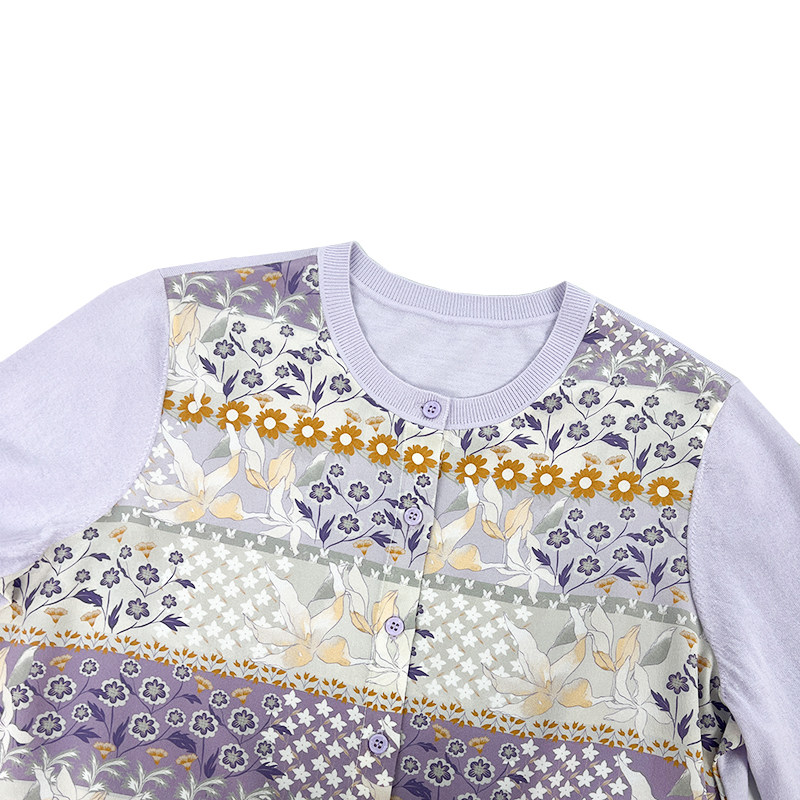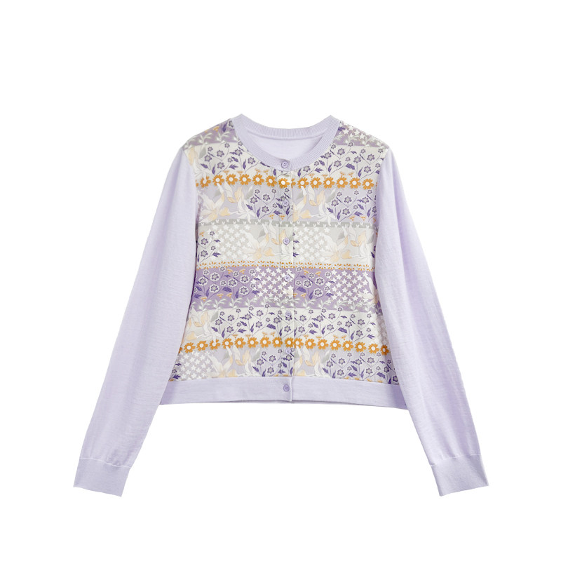 【橙庐】561219原创百花层叠桑蚕丝绵羊毛拼接针织衫 春款女气质