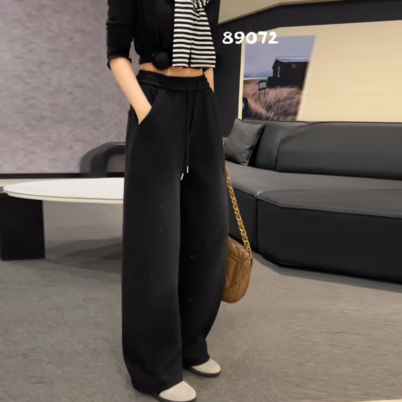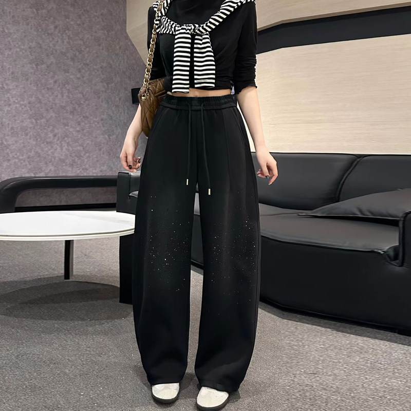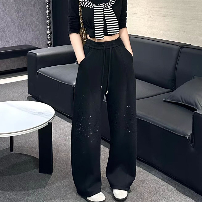 2025冬季新款重工满天星休闲百搭宽松抽绳高腰显瘦加厚阔腿拖地裤