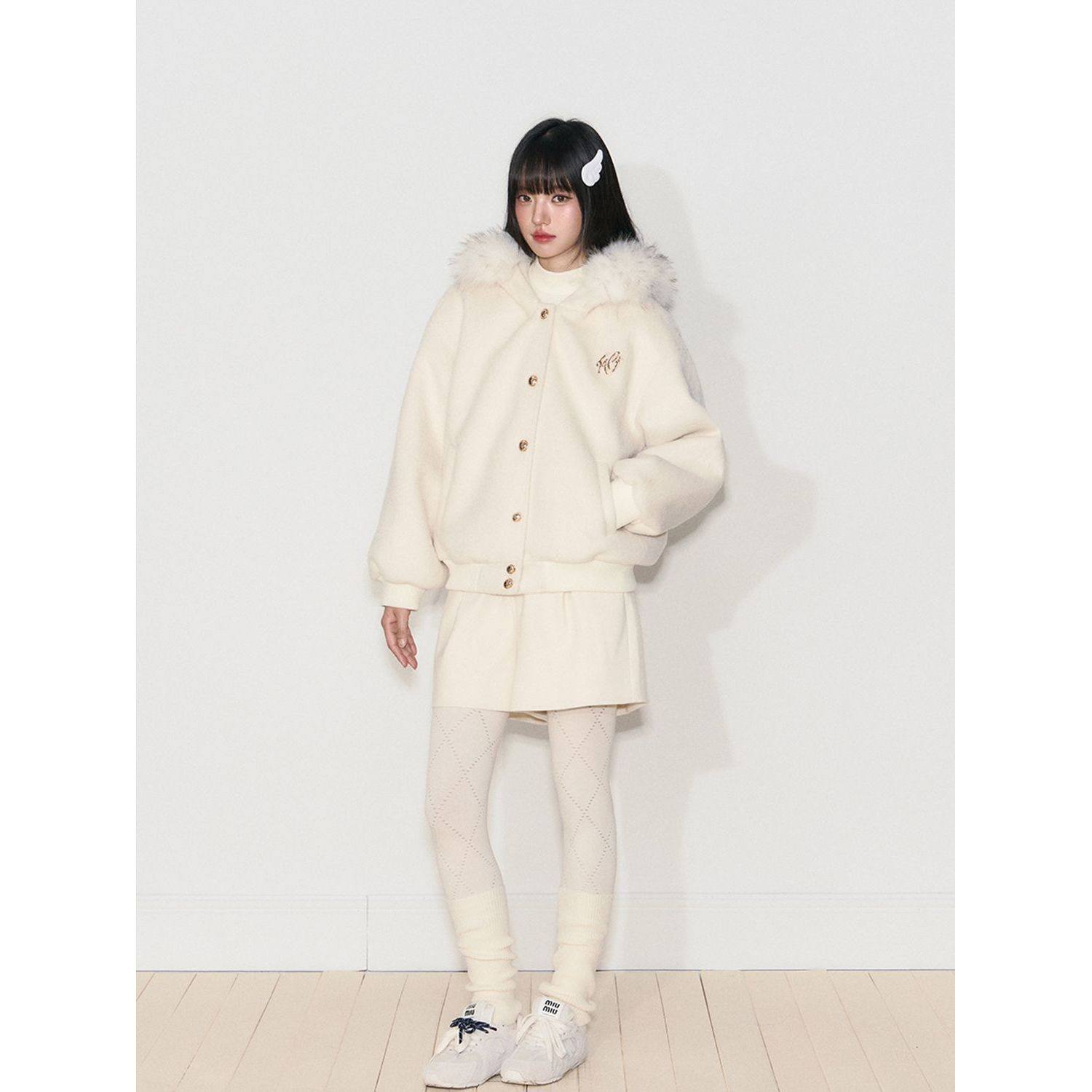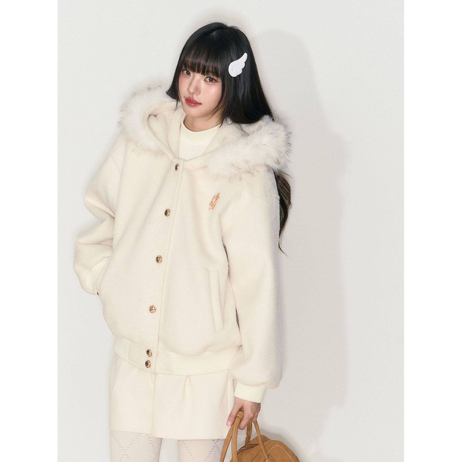 浪漫碎冰 冬季高级慵懒感毛呢连帽外套保暖毛领宽松休闲毛衣开衫