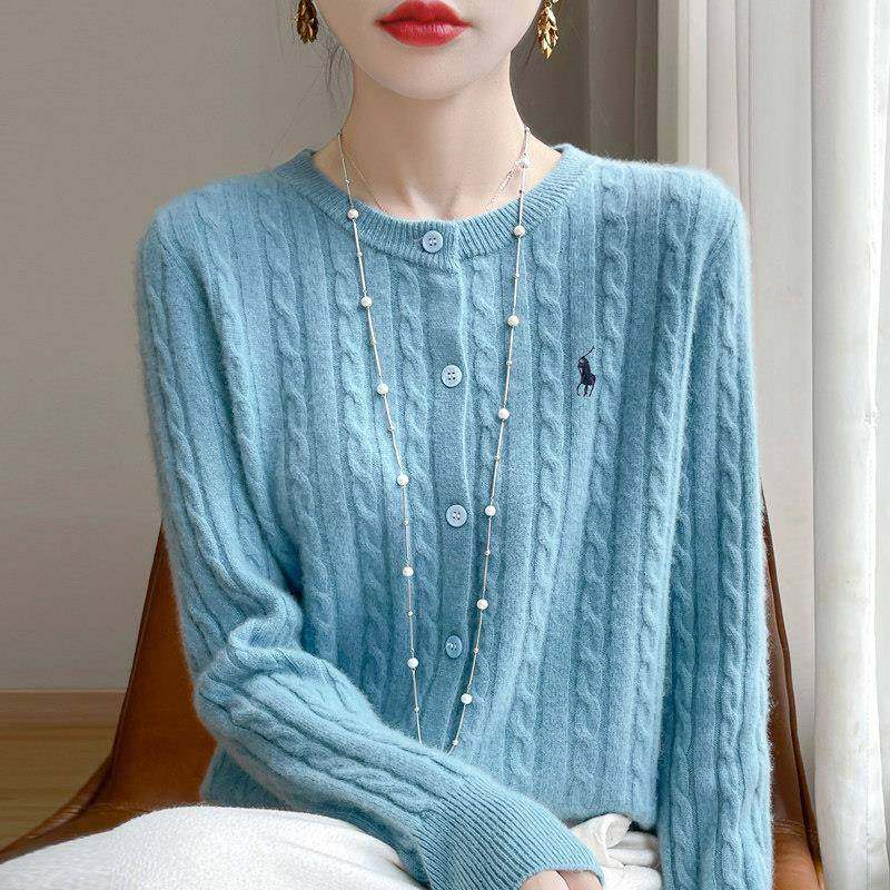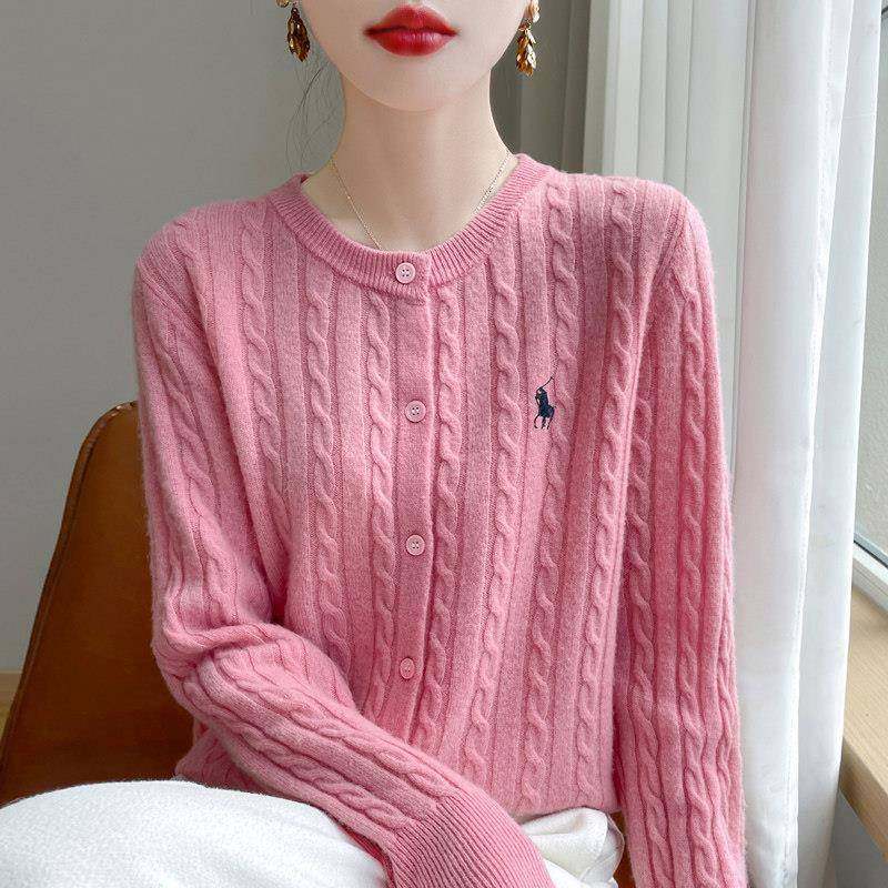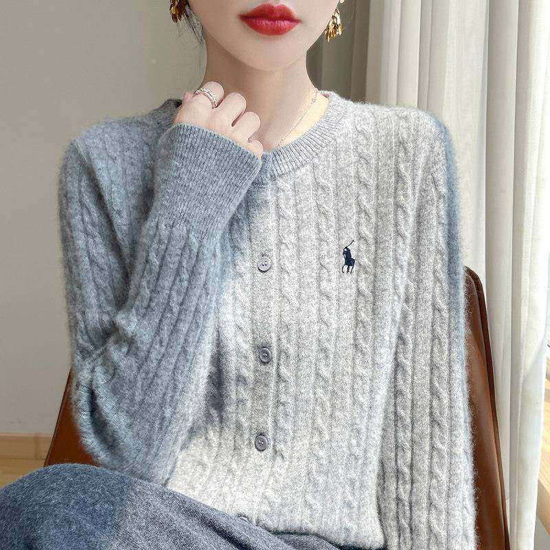 204秋冬感新款刺绣针织开衫女圆领宽松花毛衣549外套设计2上衣麻
