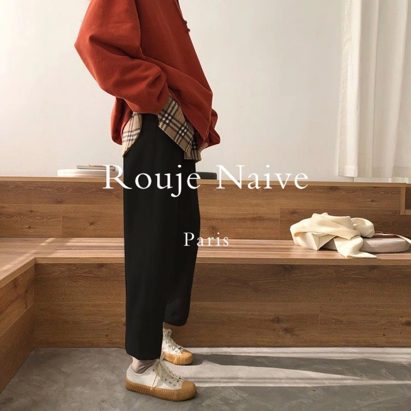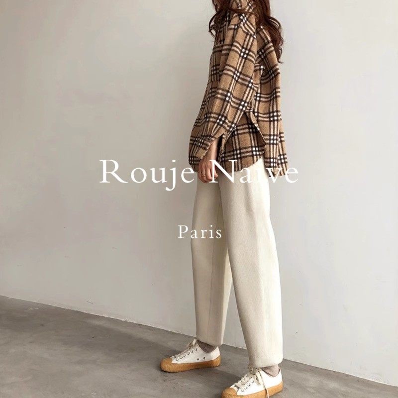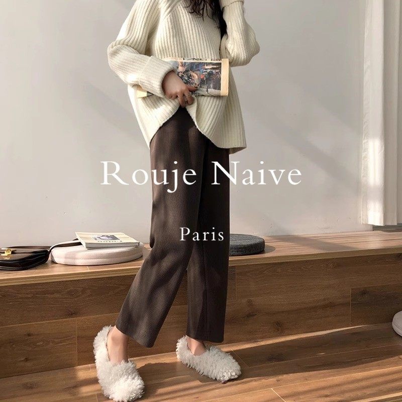 Rouje Naive棕咖色羊毛阔腿裤女秋冬香蕉裤哈伦加绒萝卜奶奶裤子