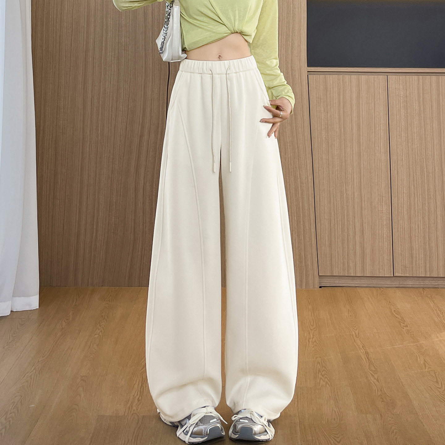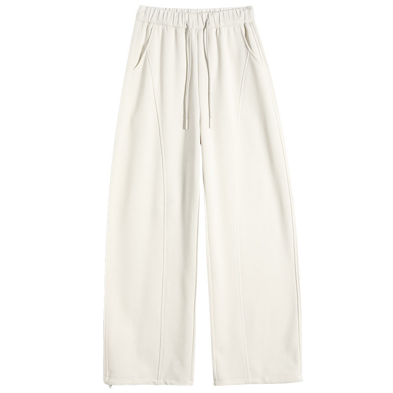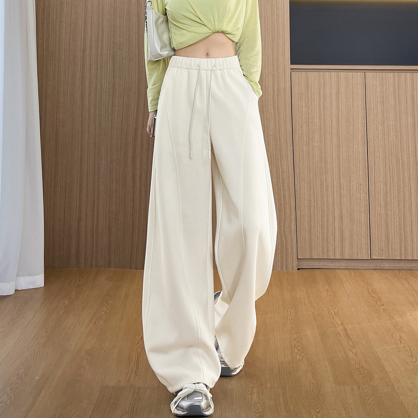 杏白色美式弯刀运动卫裤女春季2026新款高腰垂感宽松休闲阔腿裤子