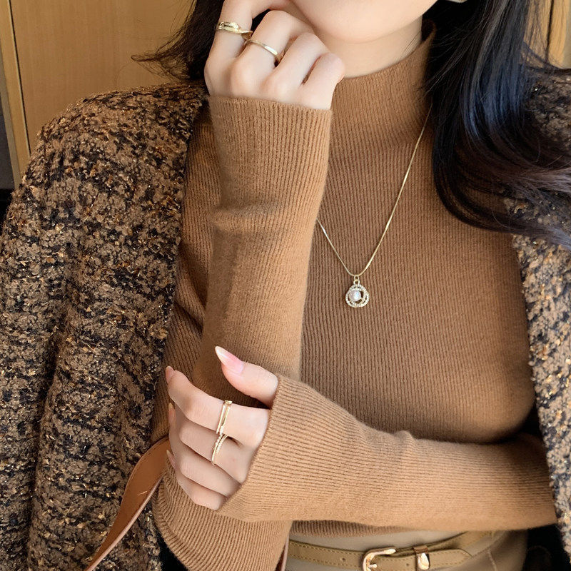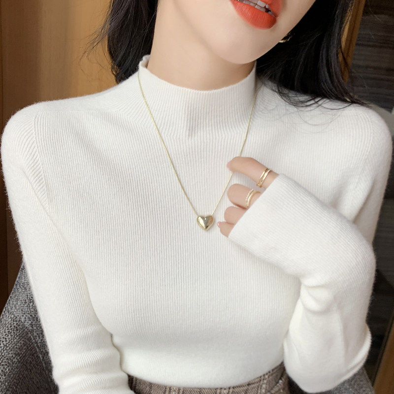 无缝一体羊毛打底衫女秋冬修身薄款半高领针织衫上衣中领内搭毛衣