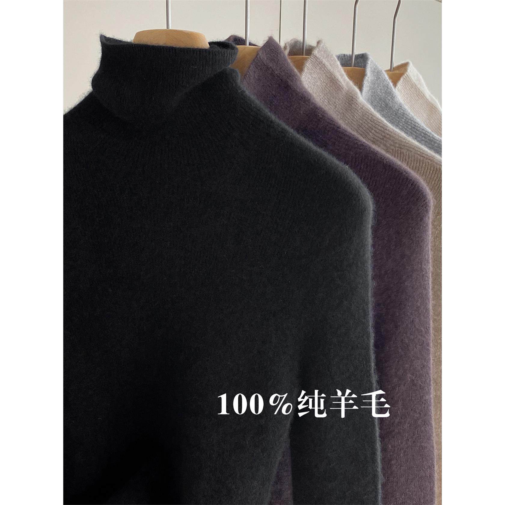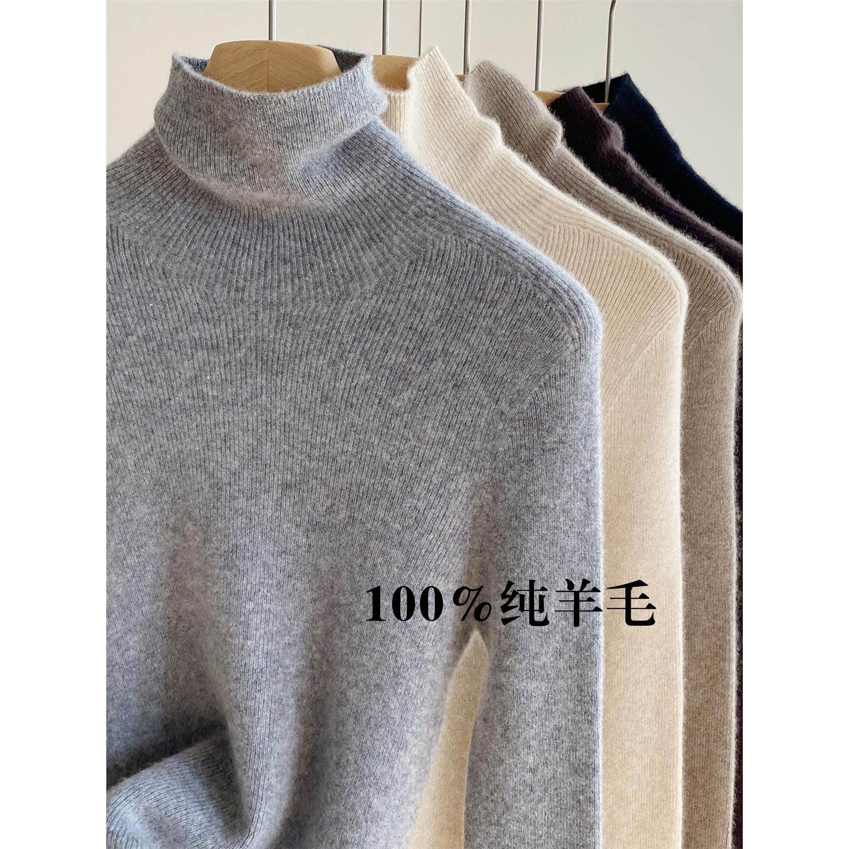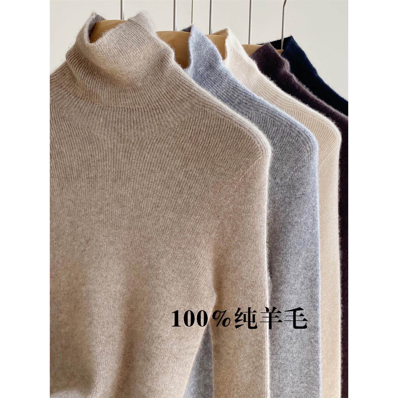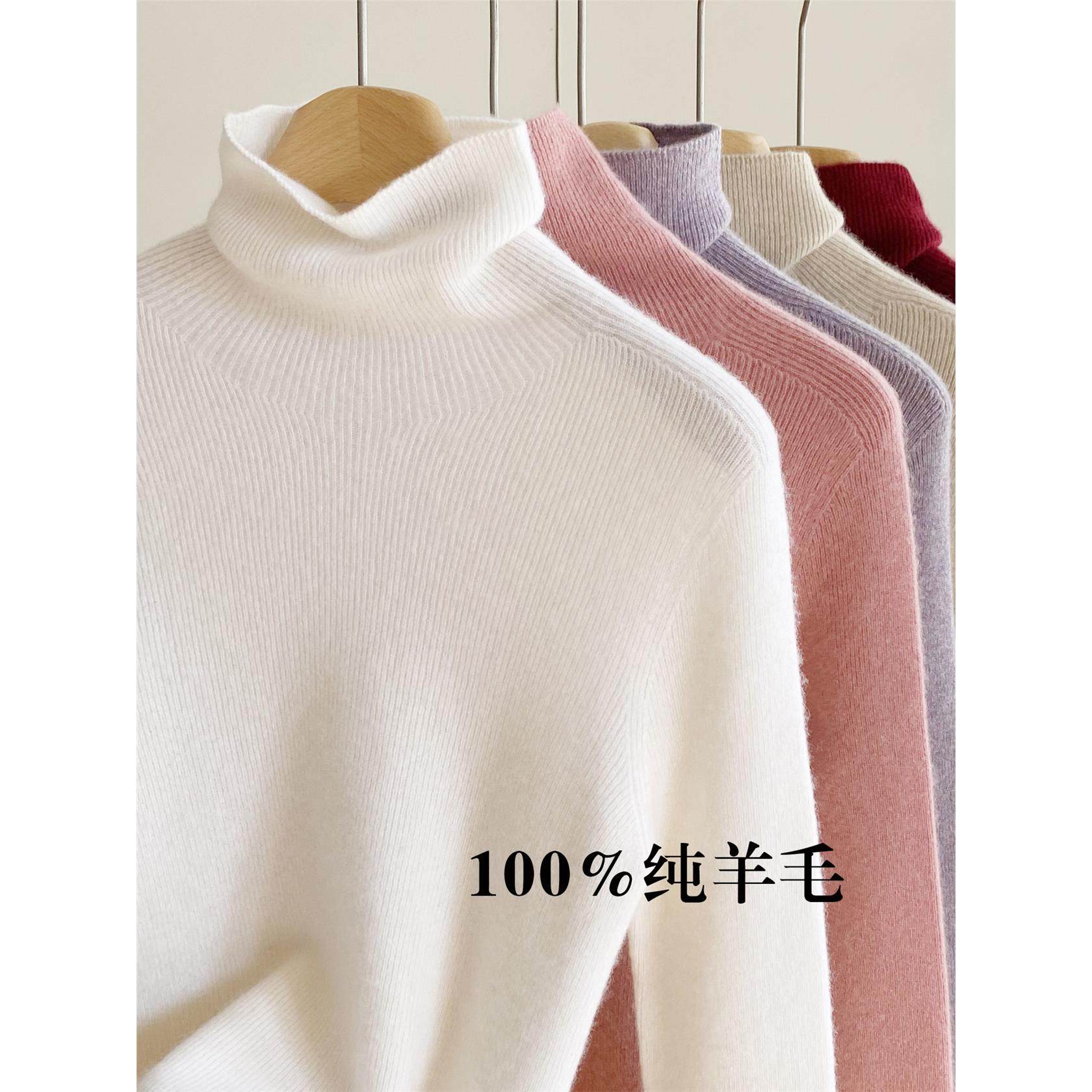 100%纯羊毛打底衫女秋冬季内搭堆堆领修身高级感上衣无缝高领毛衣