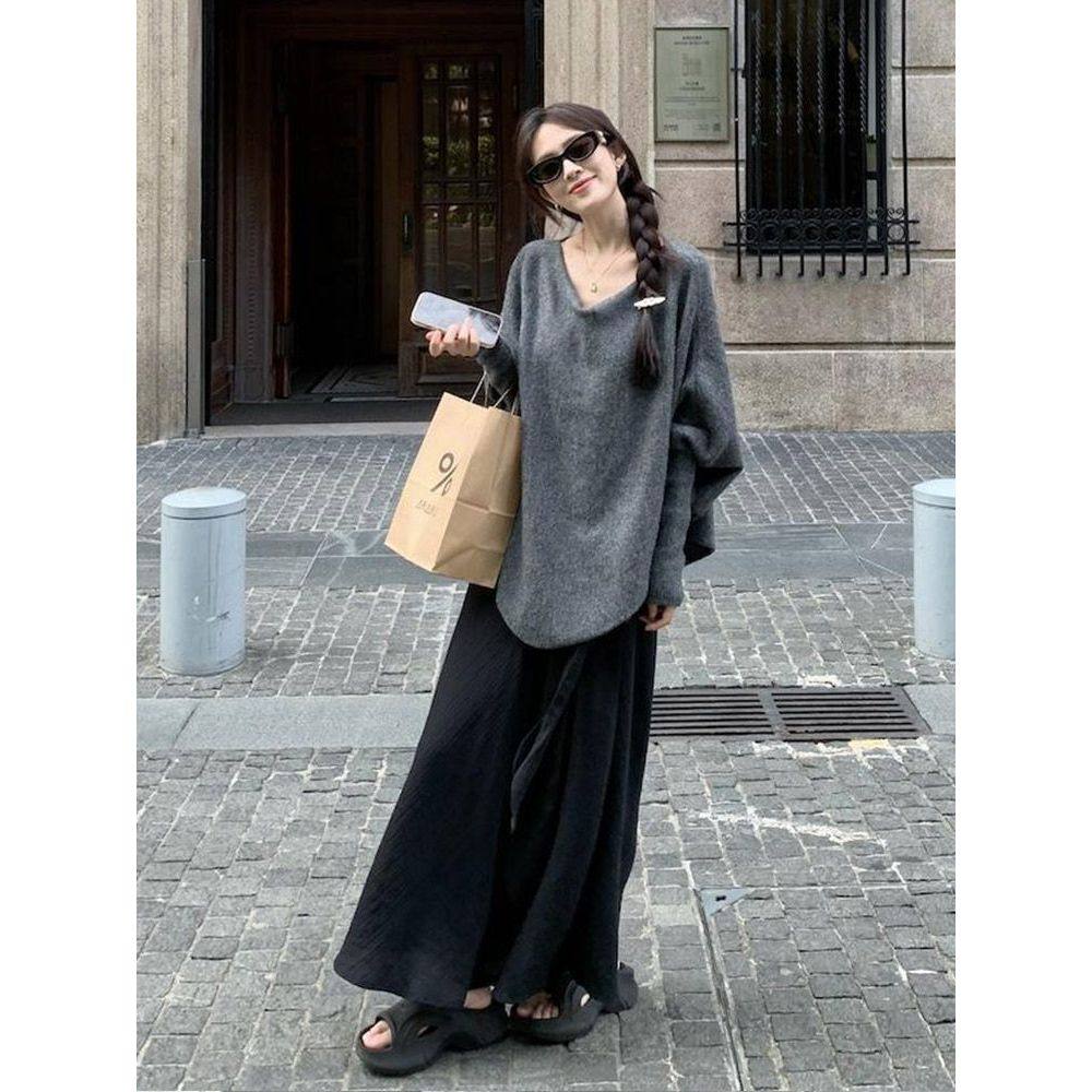 首页> 女装> 柏林之恋/贵贵慵懒蝙蝠袖毛衣2024秋冬新款不规则设计感针织上衣