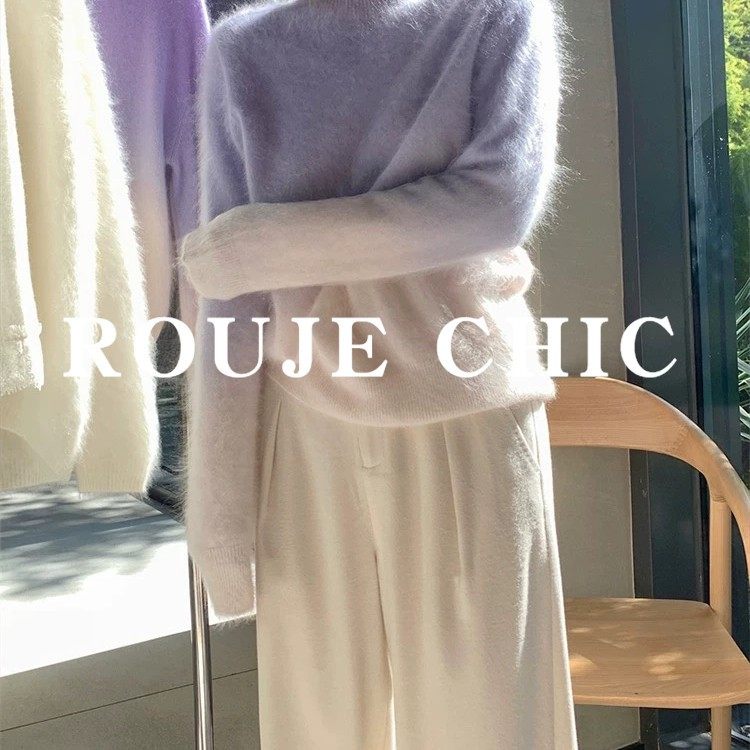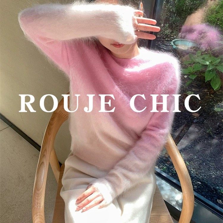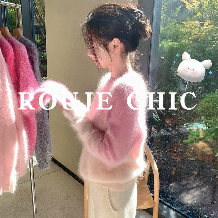 法国rouje chic法式温柔软糯渐变粉水貂绒毛衣女秋冬高级感针织衫