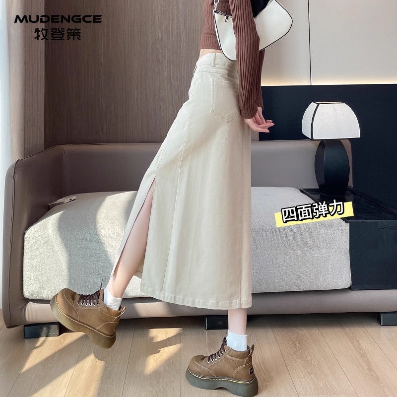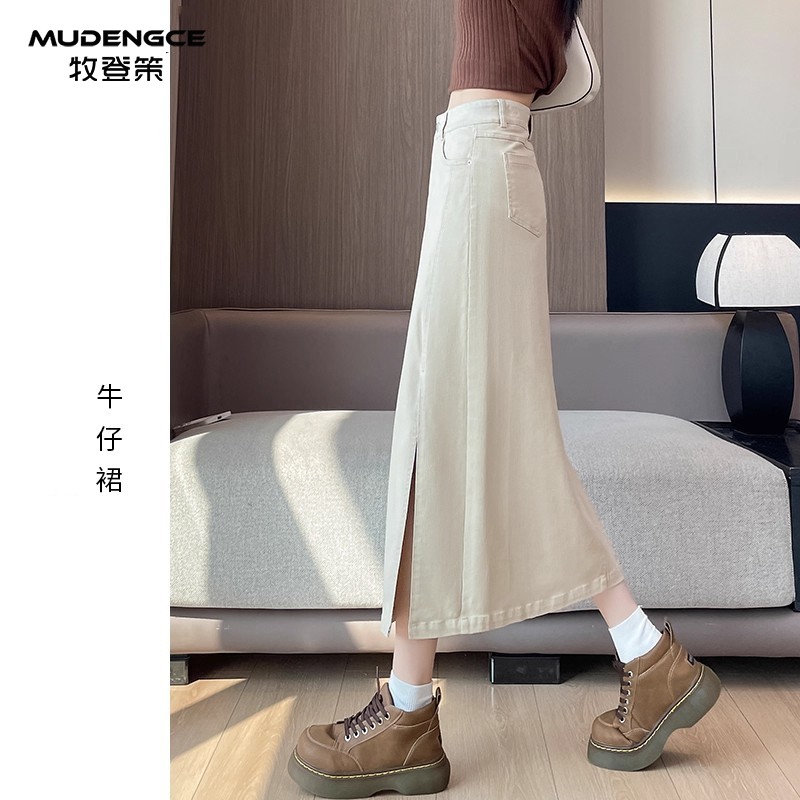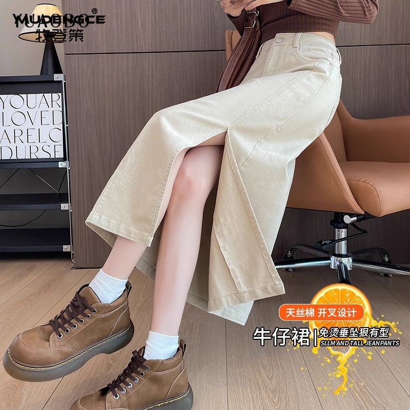 直筒牛仔包臀裙女长款遮胯开叉a字半身裙高腰天丝显瘦气质长裙