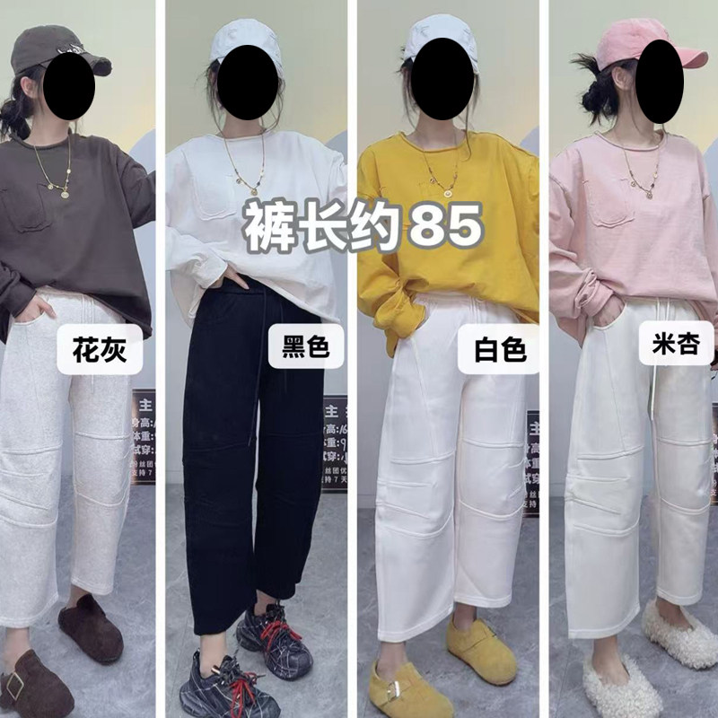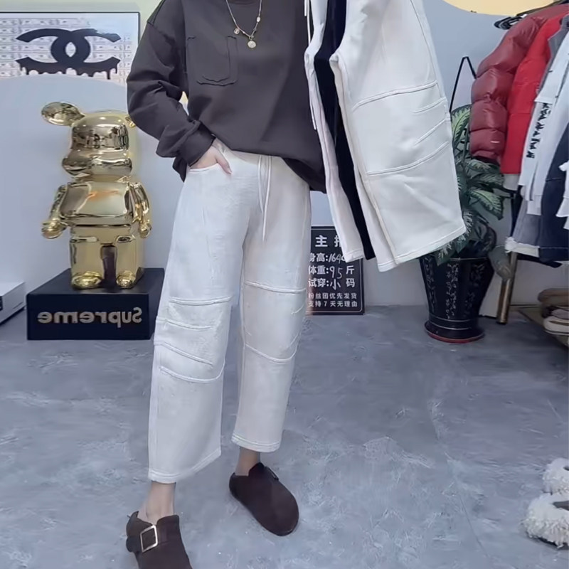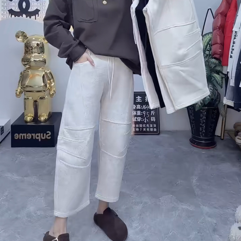 欧货时尚松紧高腰弯刀裤2025秋冬加厚加绒宽松净版简约九分阔腿裤