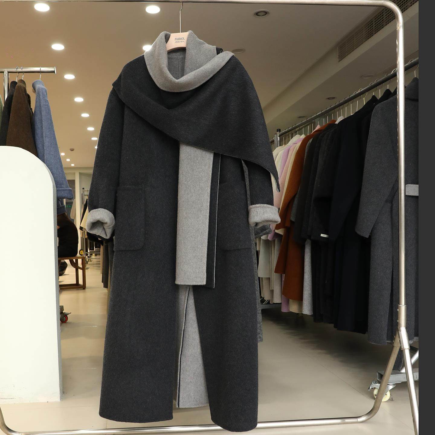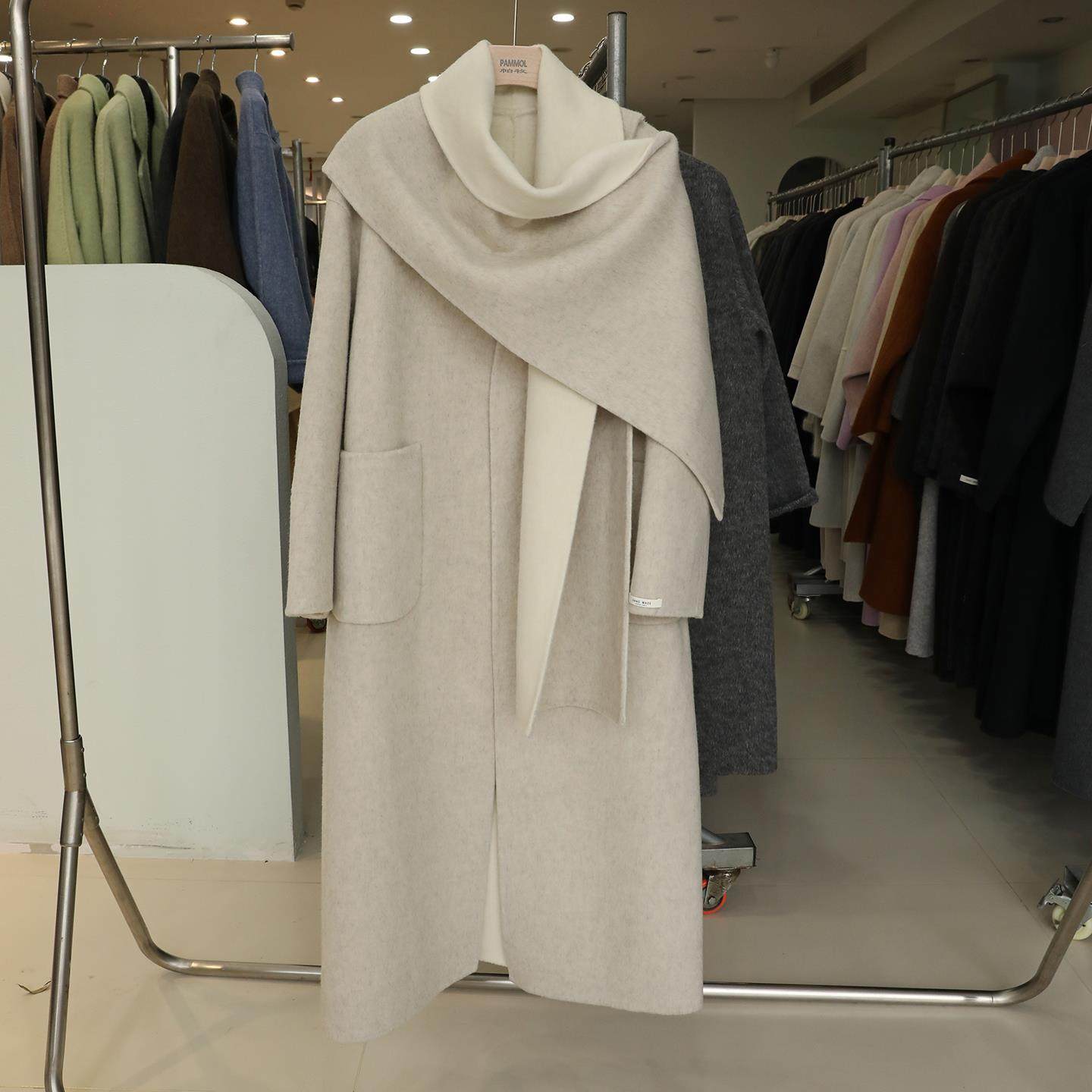 2025秋冬新款设计感大围巾加长款撞色双面绒毛呢外套女潮