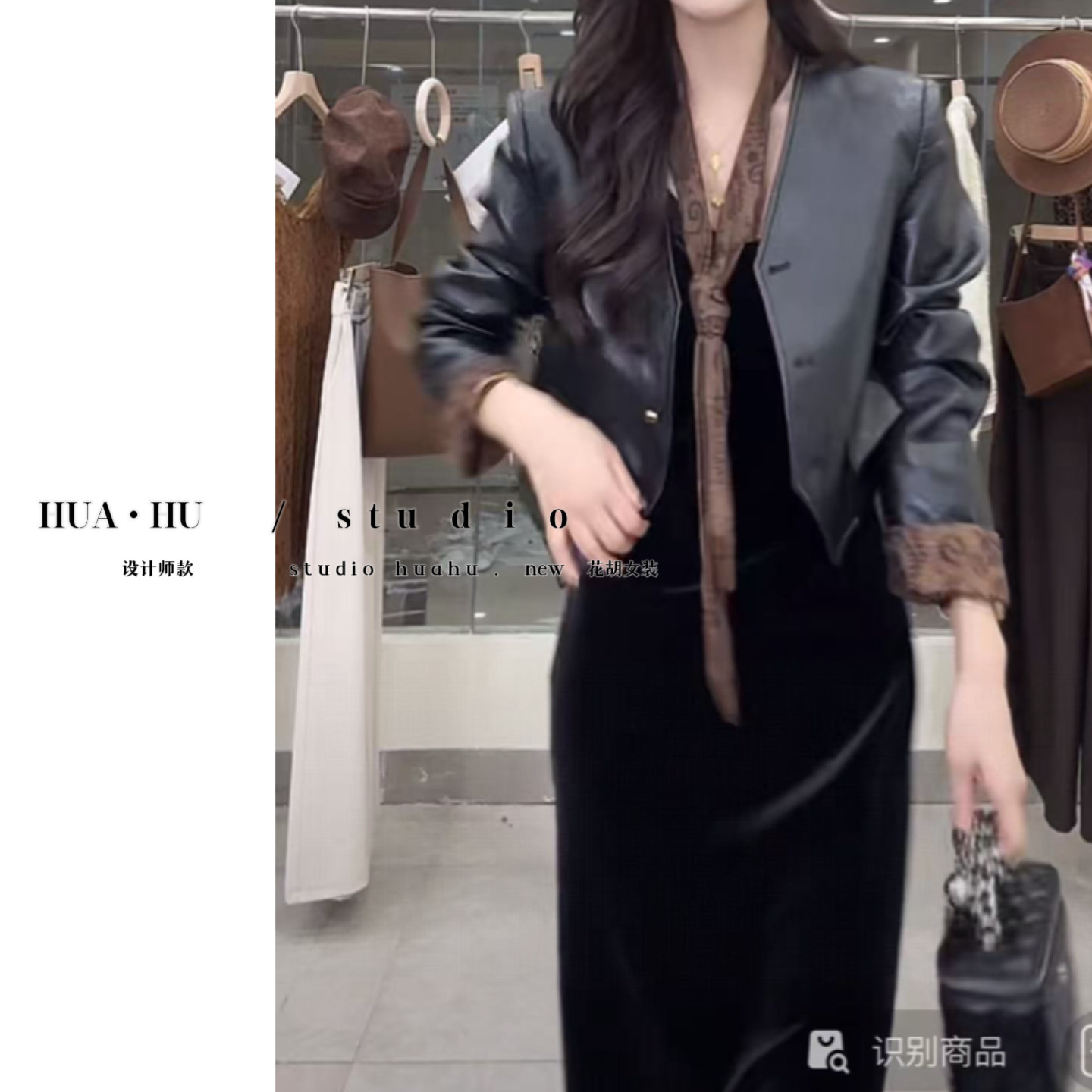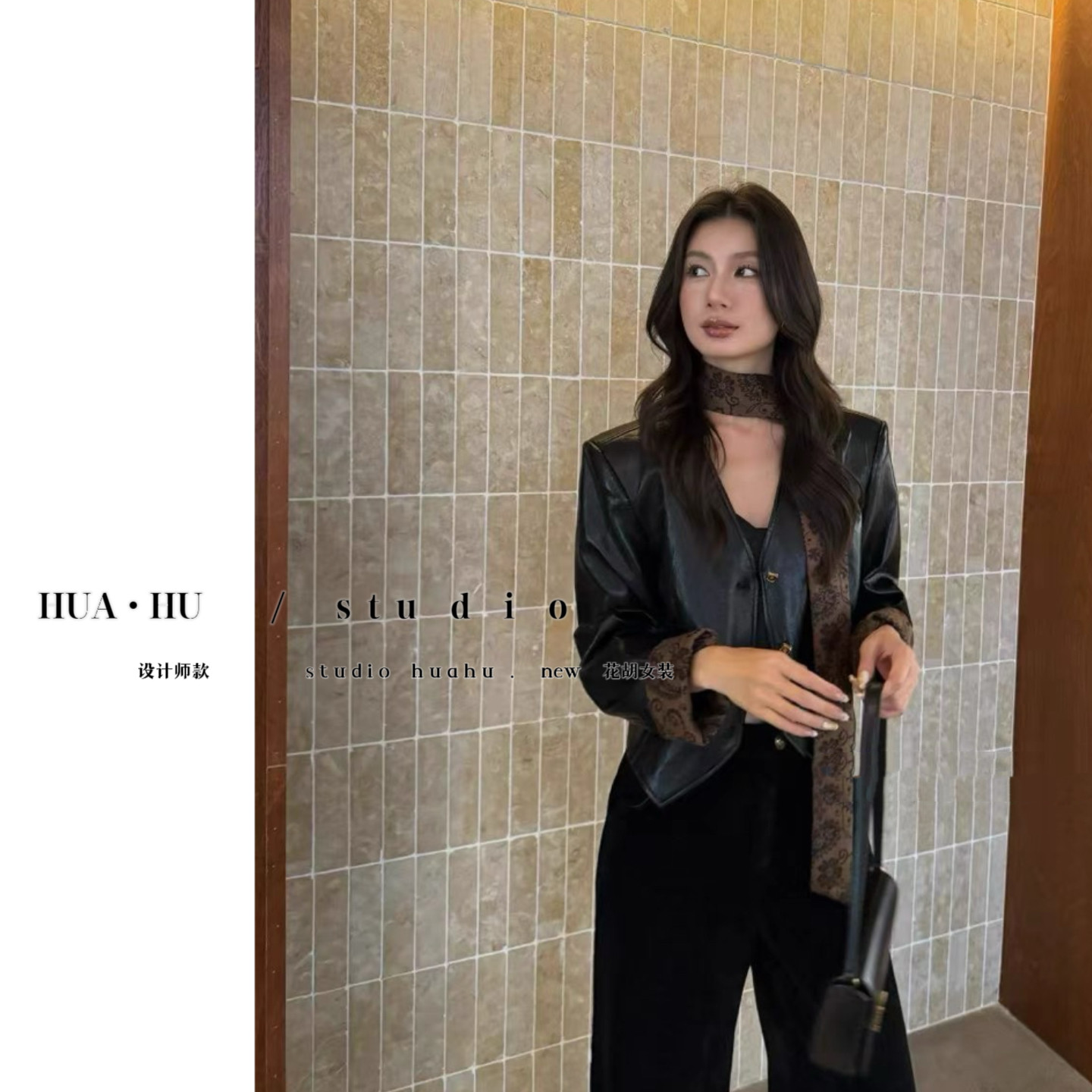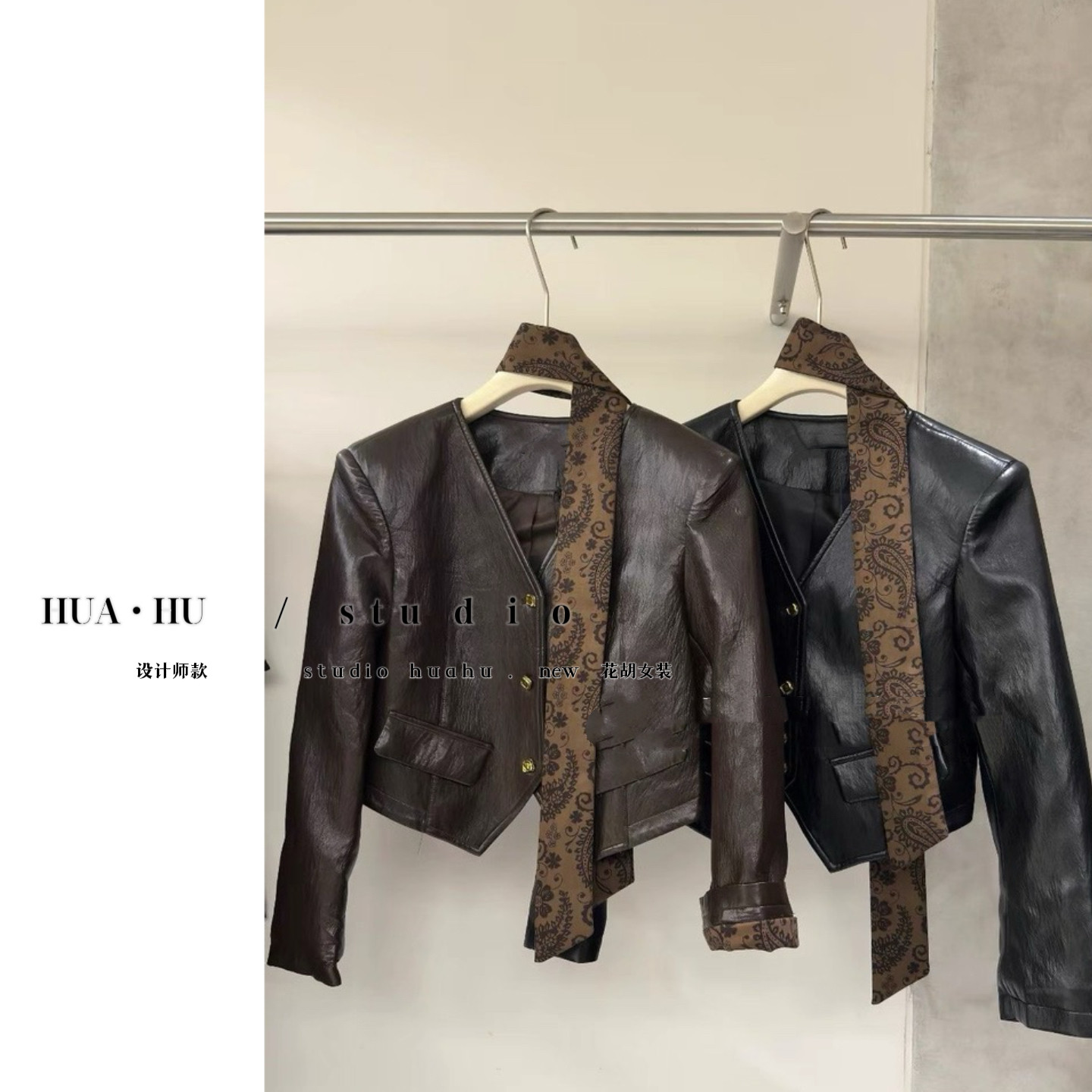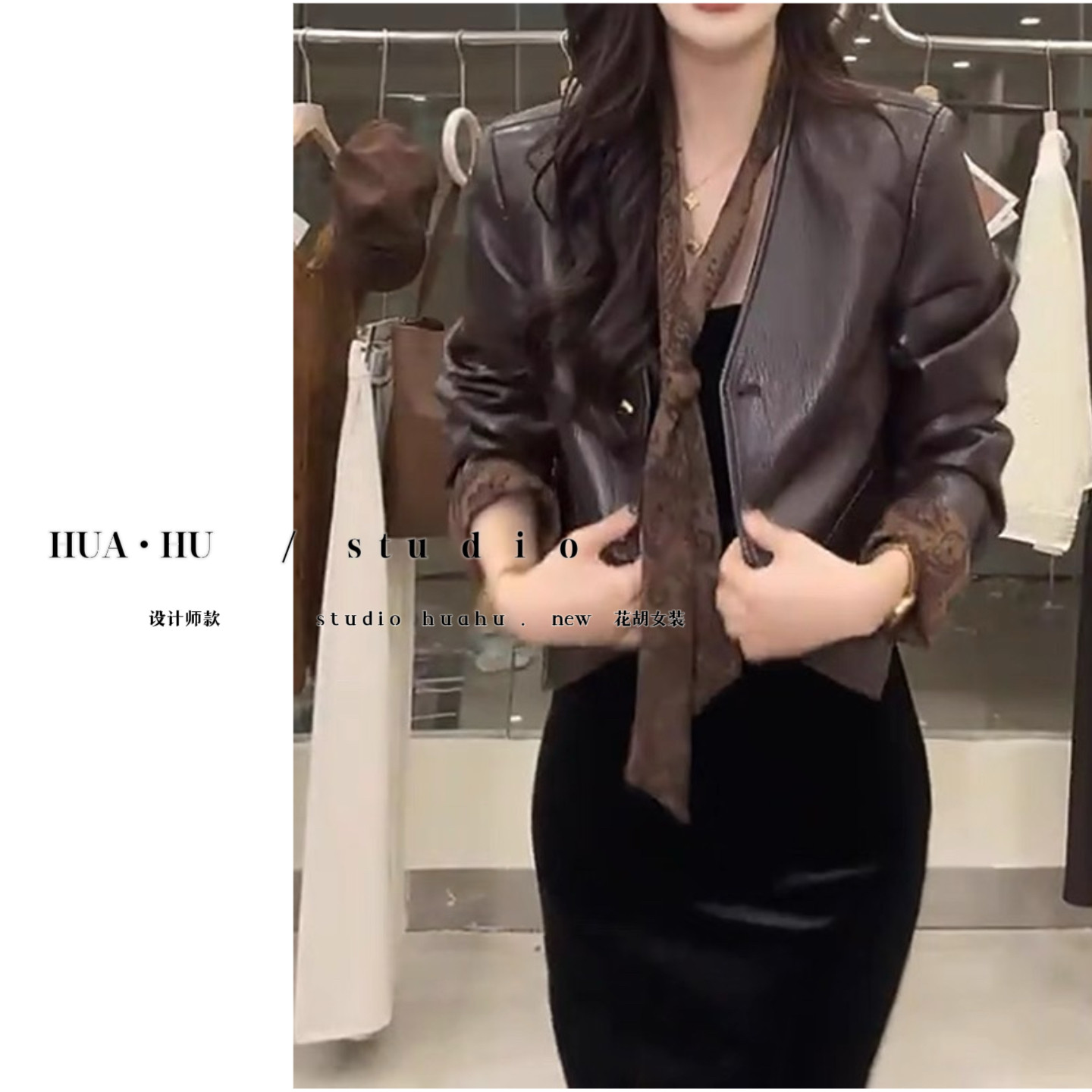 【香奢夫人】设计师|静奢专柜同步v领皮衣外套0飘带秋冬new1091#