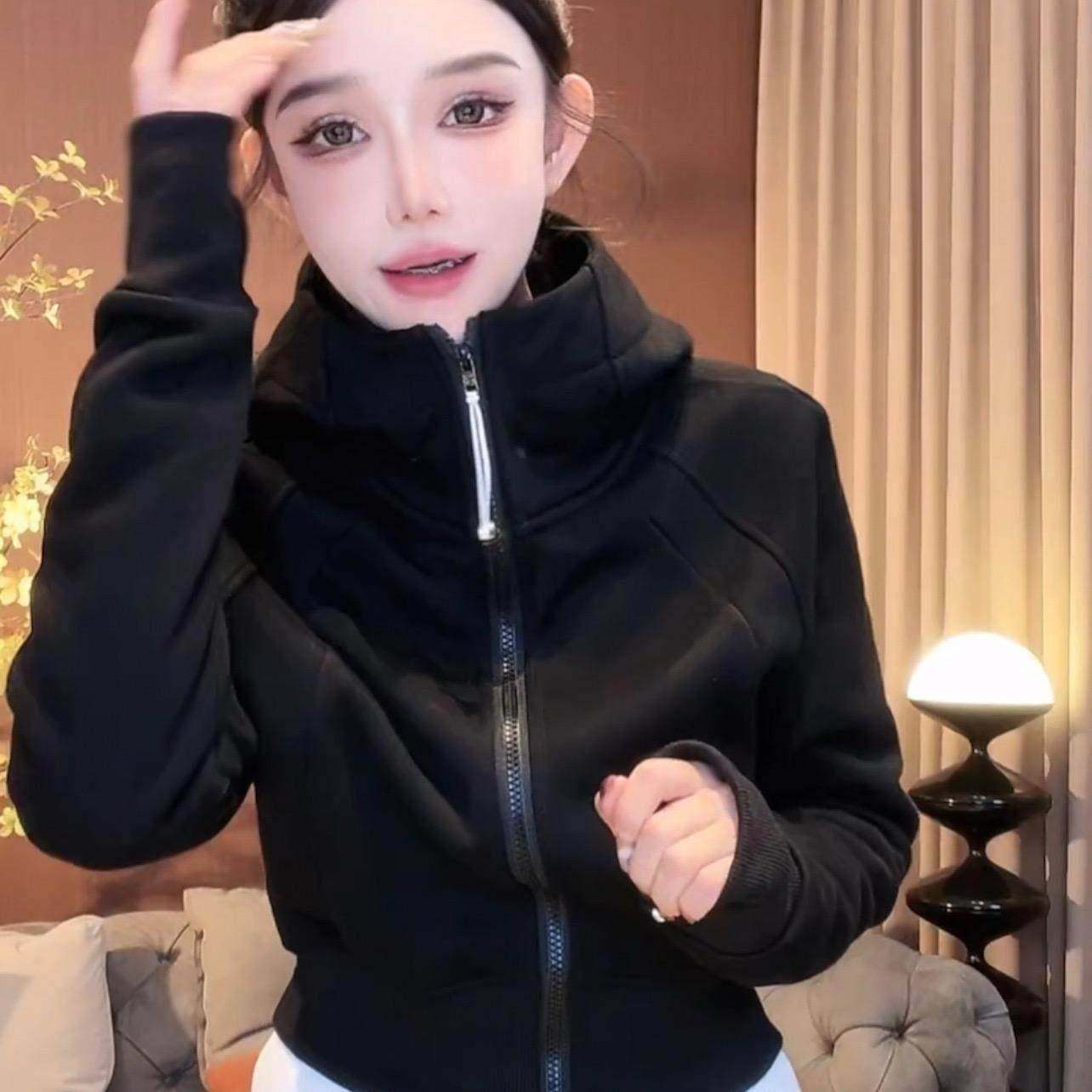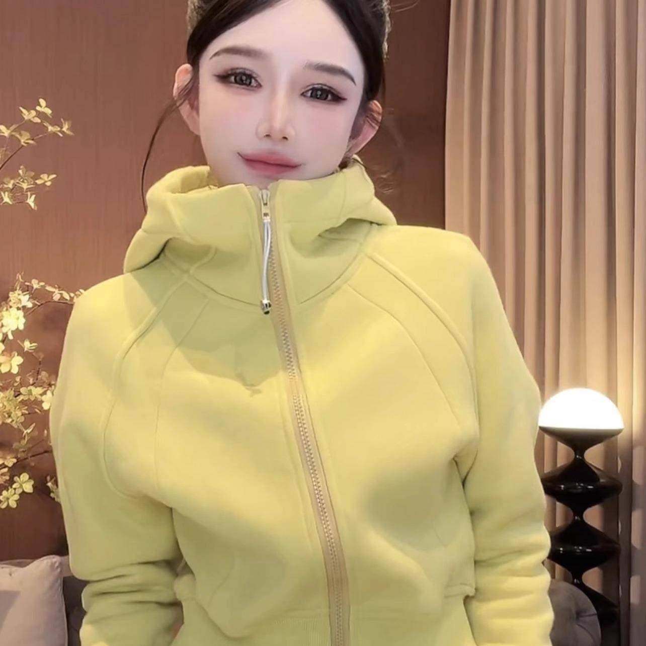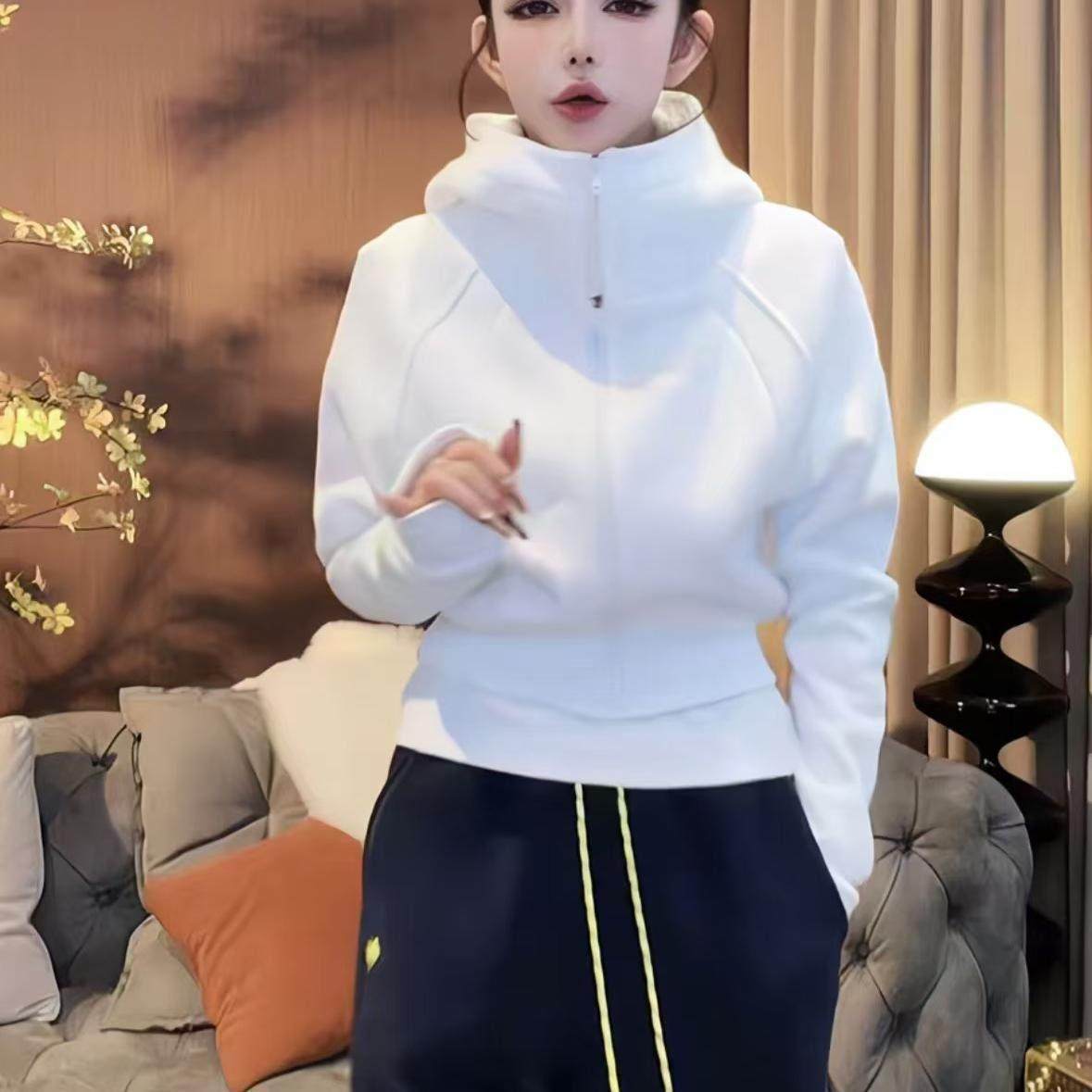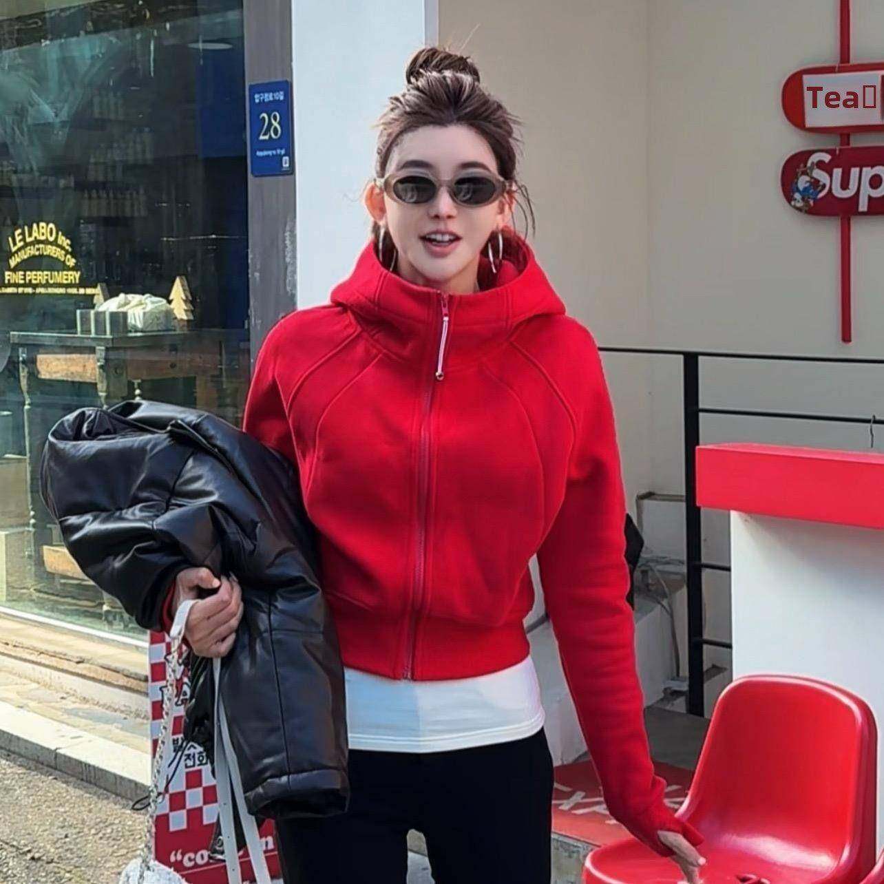 首页> 女装> 香港2025冬装爆款连帽红色短款卫衣女加绒加厚小个子欧货拉炼上衣