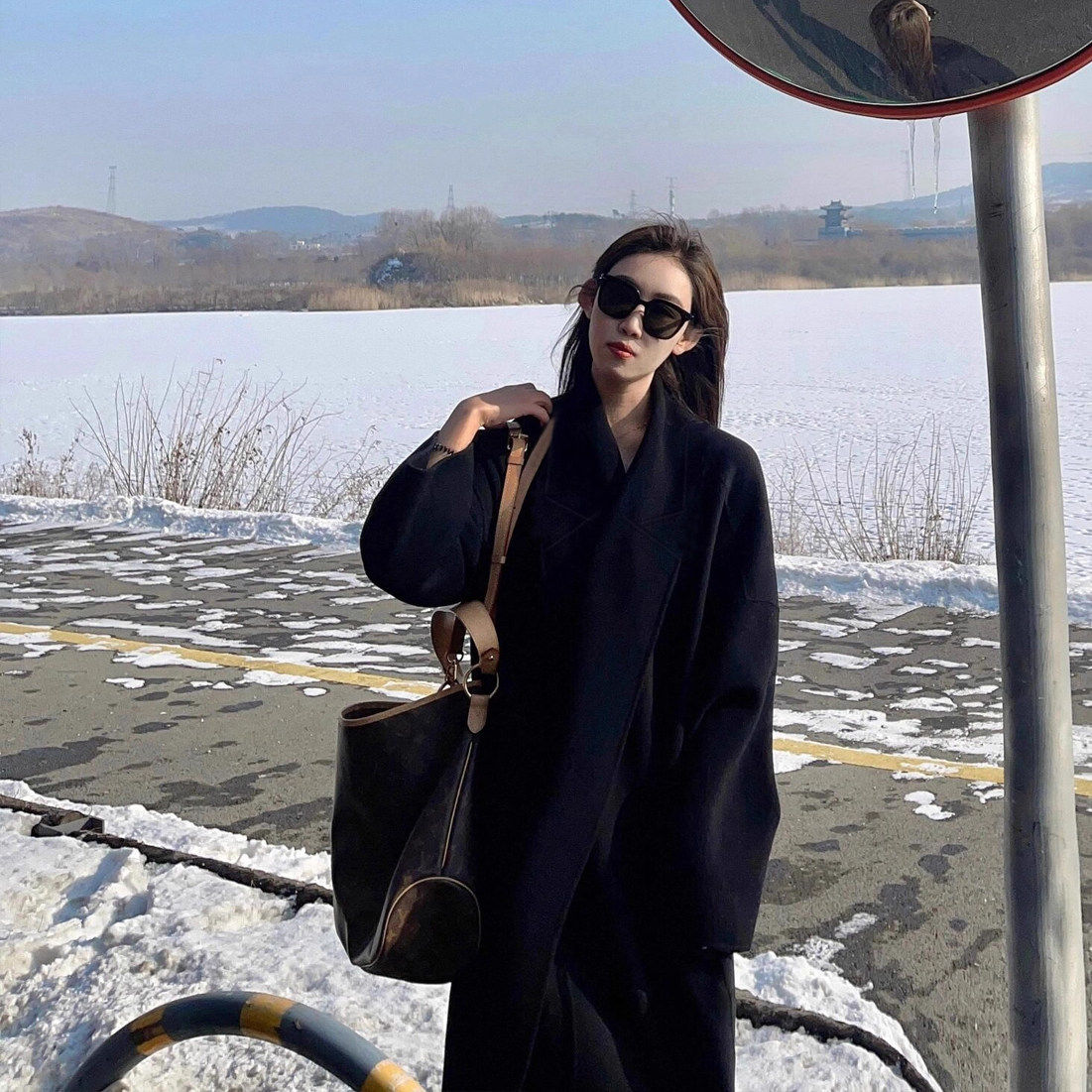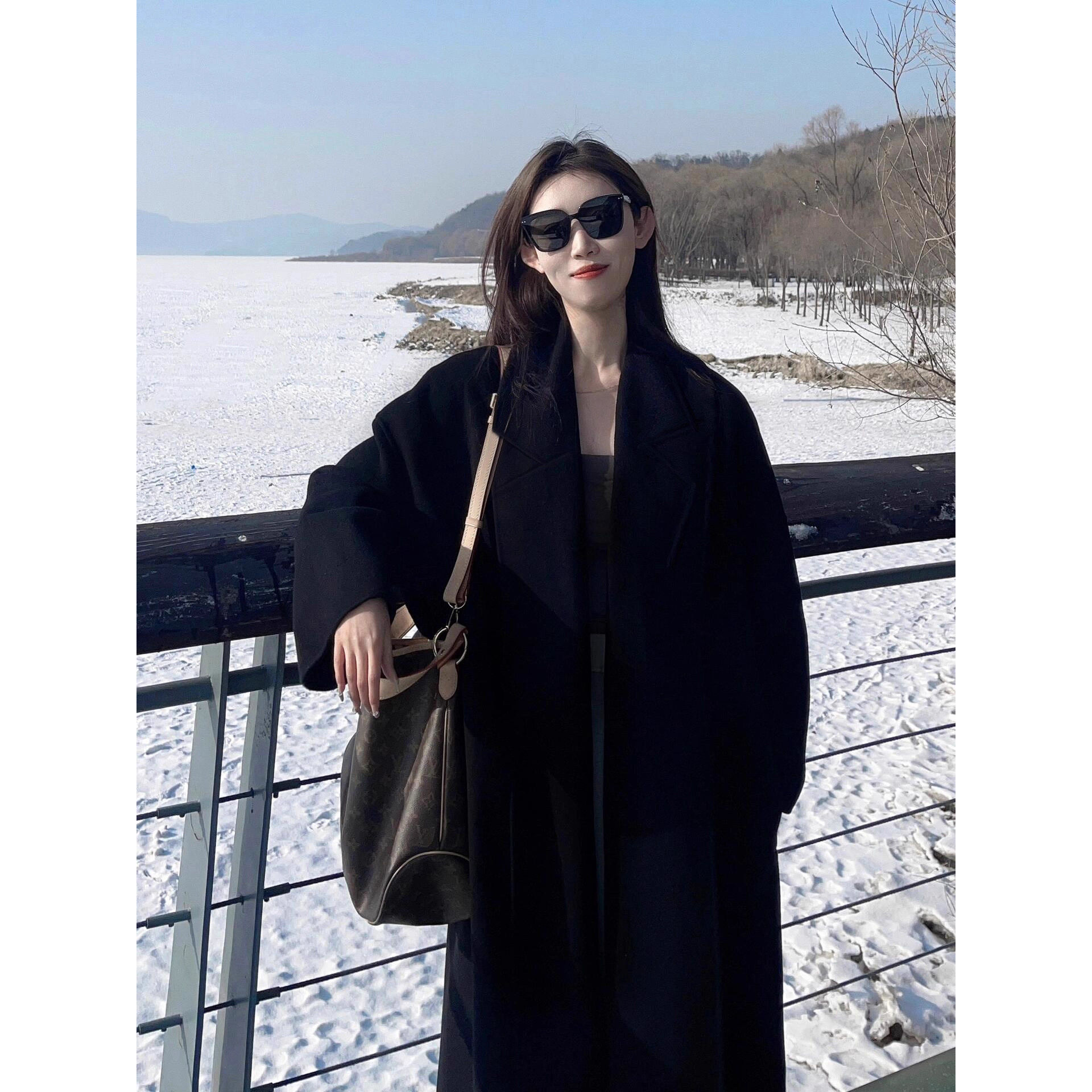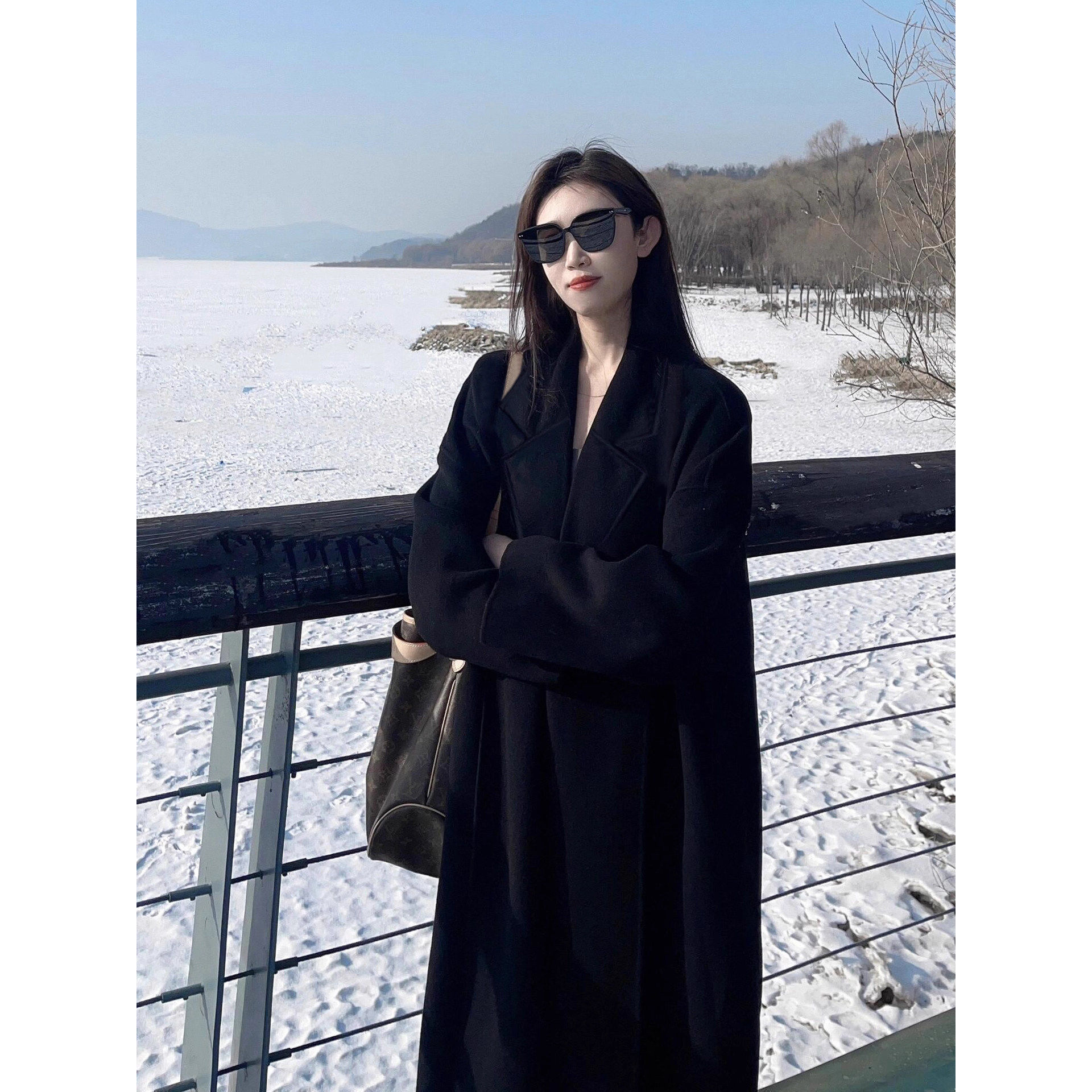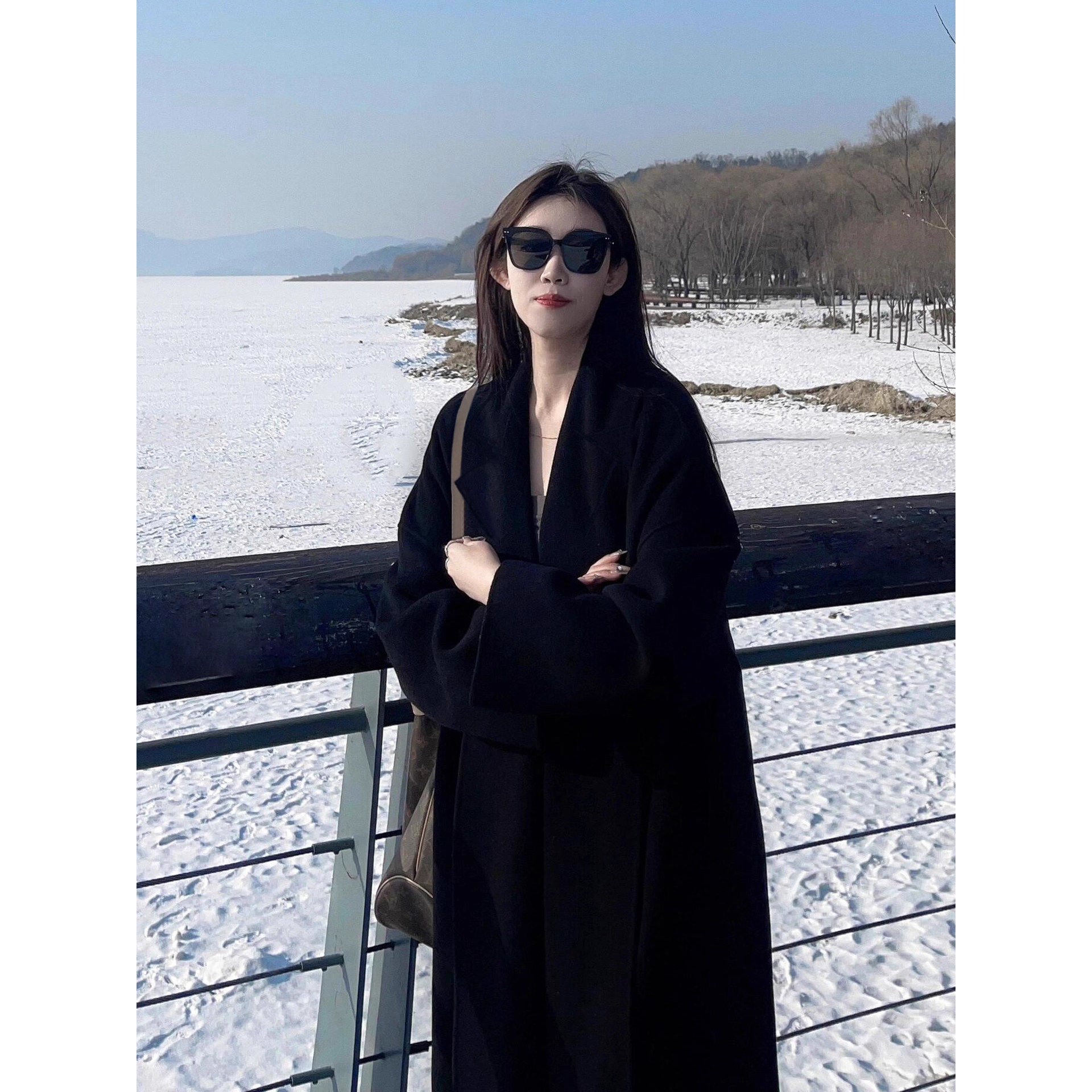赫本风黑色羽绒服内胆毛呢外套女2025新款冬季中长款加厚呢子大衣