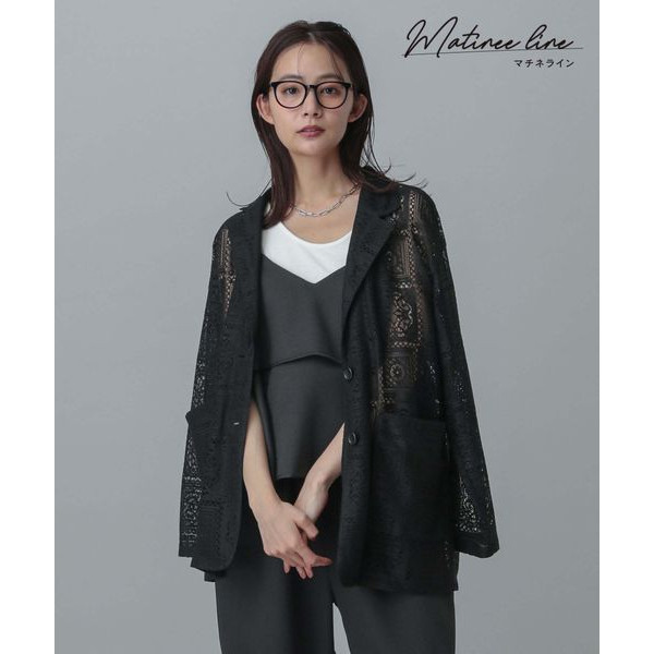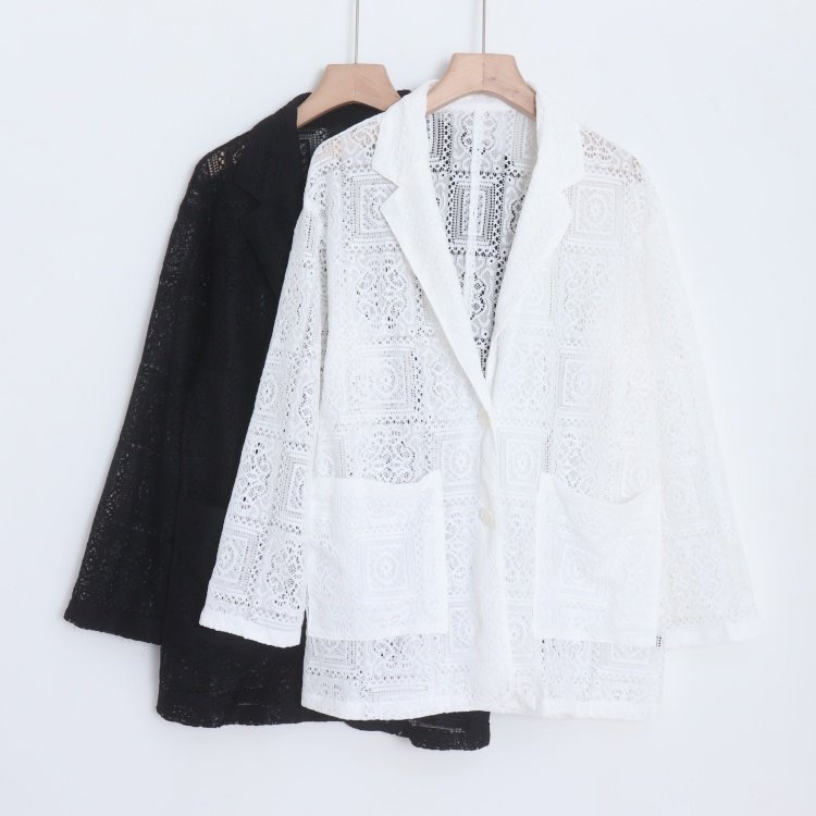 D13054日单新款客供料宽松显瘦女纯色通勤气质镂空蕾丝西装外套