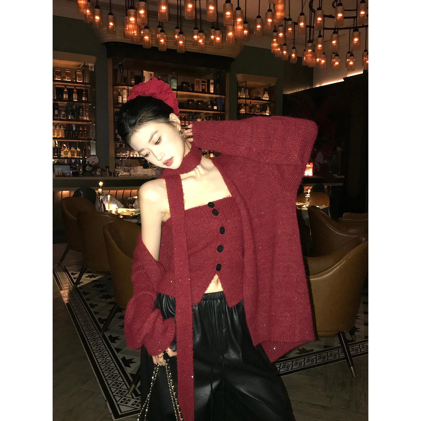 氛围感毛衣外套女春季外衣韩系新年穿搭红色针织开衫外穿纯欲上衣