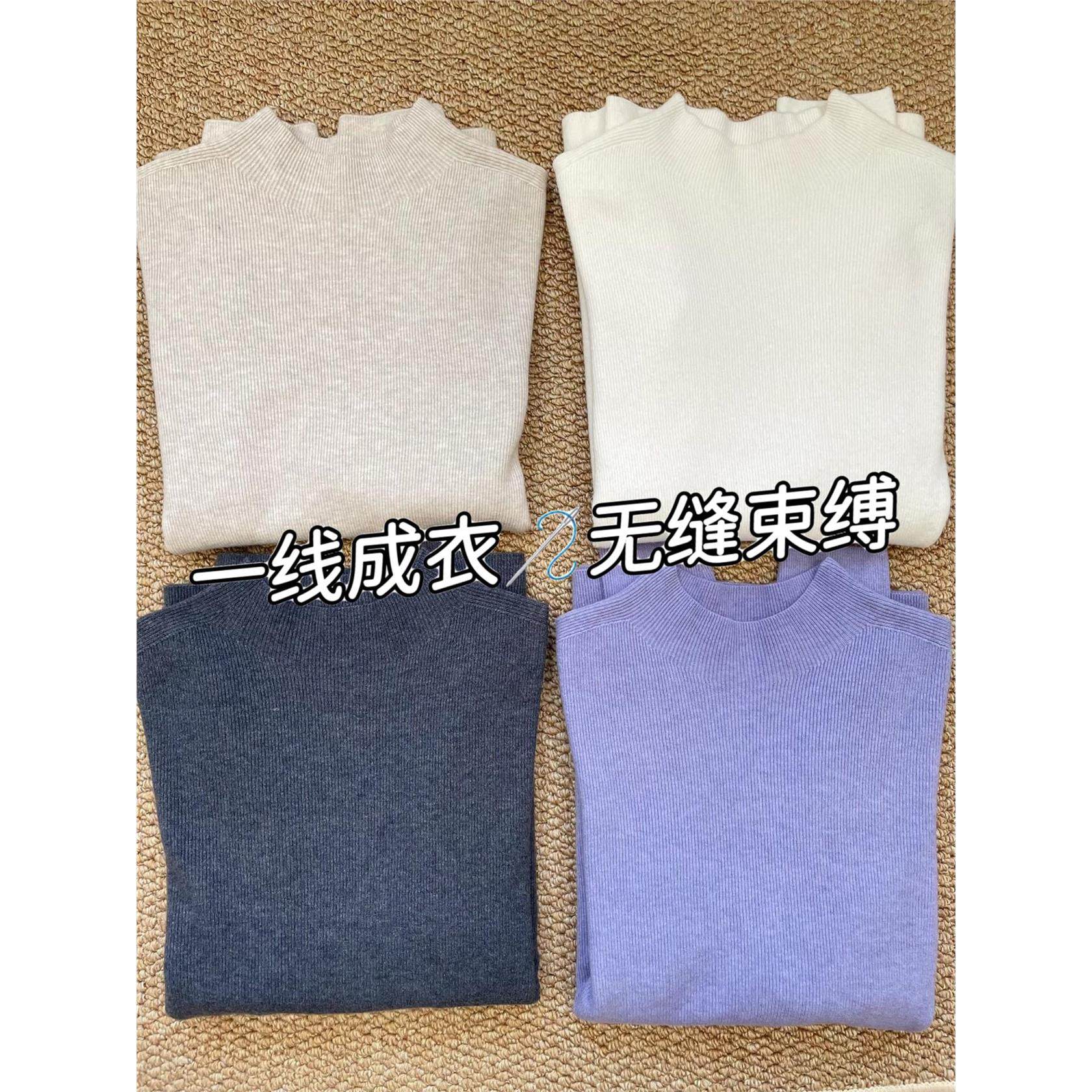 灰色小立领一体无缝针织羊毛打底衫女高级感秋冬简约毛衣内搭上衣