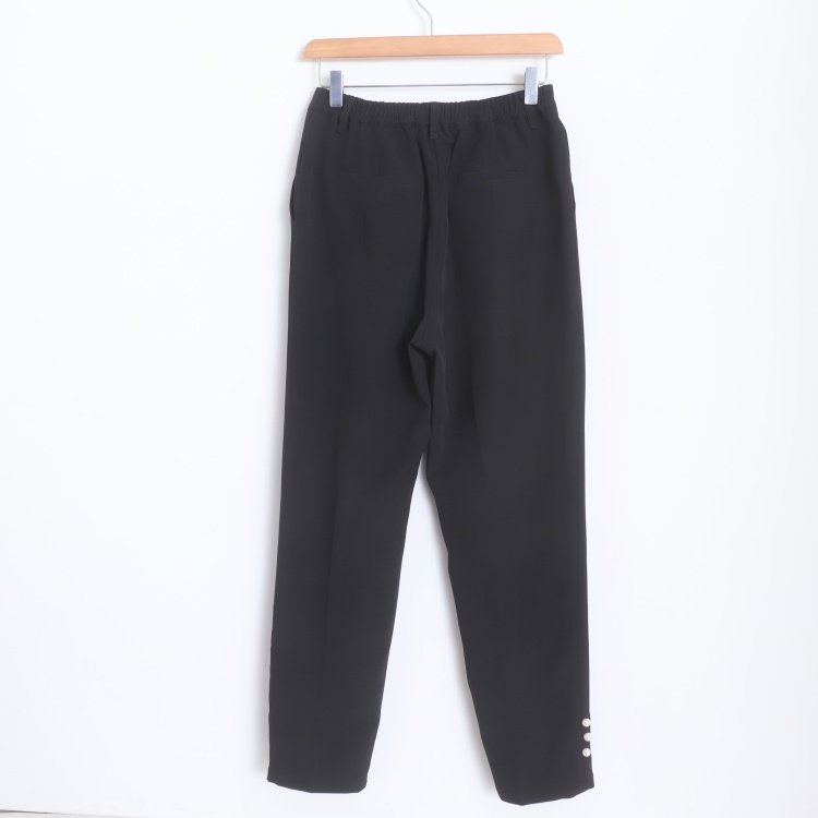 D16085日单新款挂扣松紧高腰裤脚有珍珠扣女纯色气质通勤哈伦裤