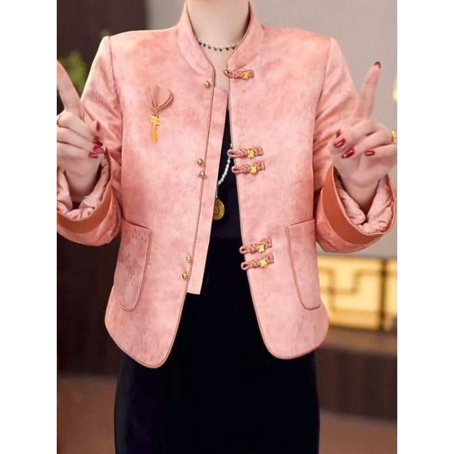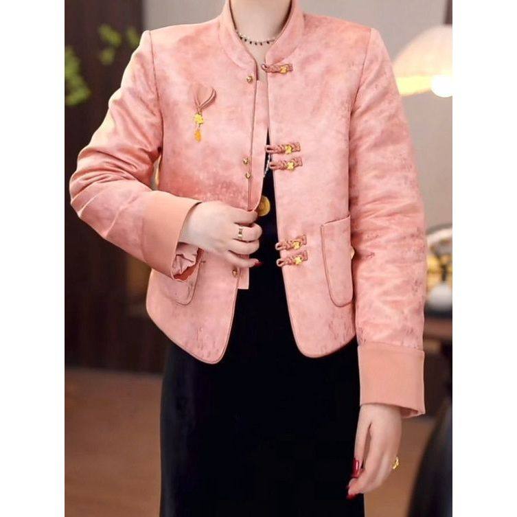 新中式宋锦提花缎加厚棉衣外套冬季新款时尚气质显瘦国风保暖棉服