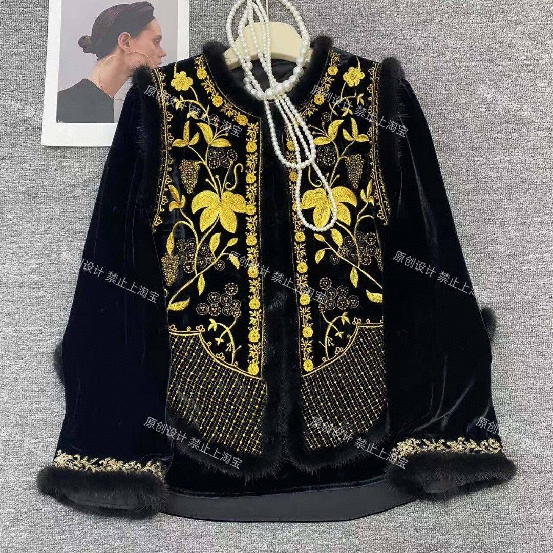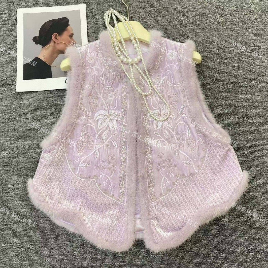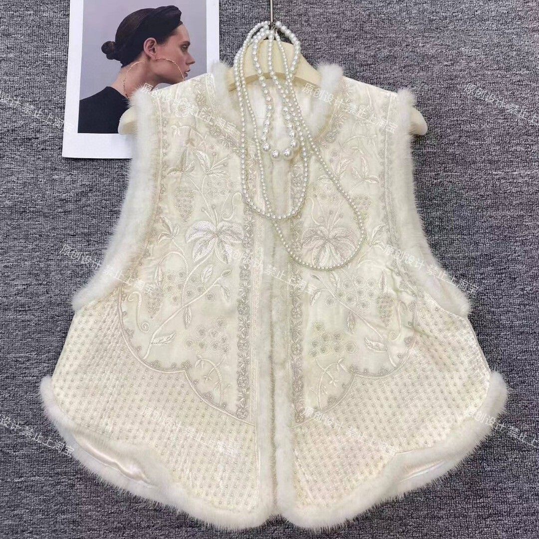 冬上新真丝丝绒刺绣钉珠水貂马甲内胆桑蚕丝棉马甲(含100%真丝)