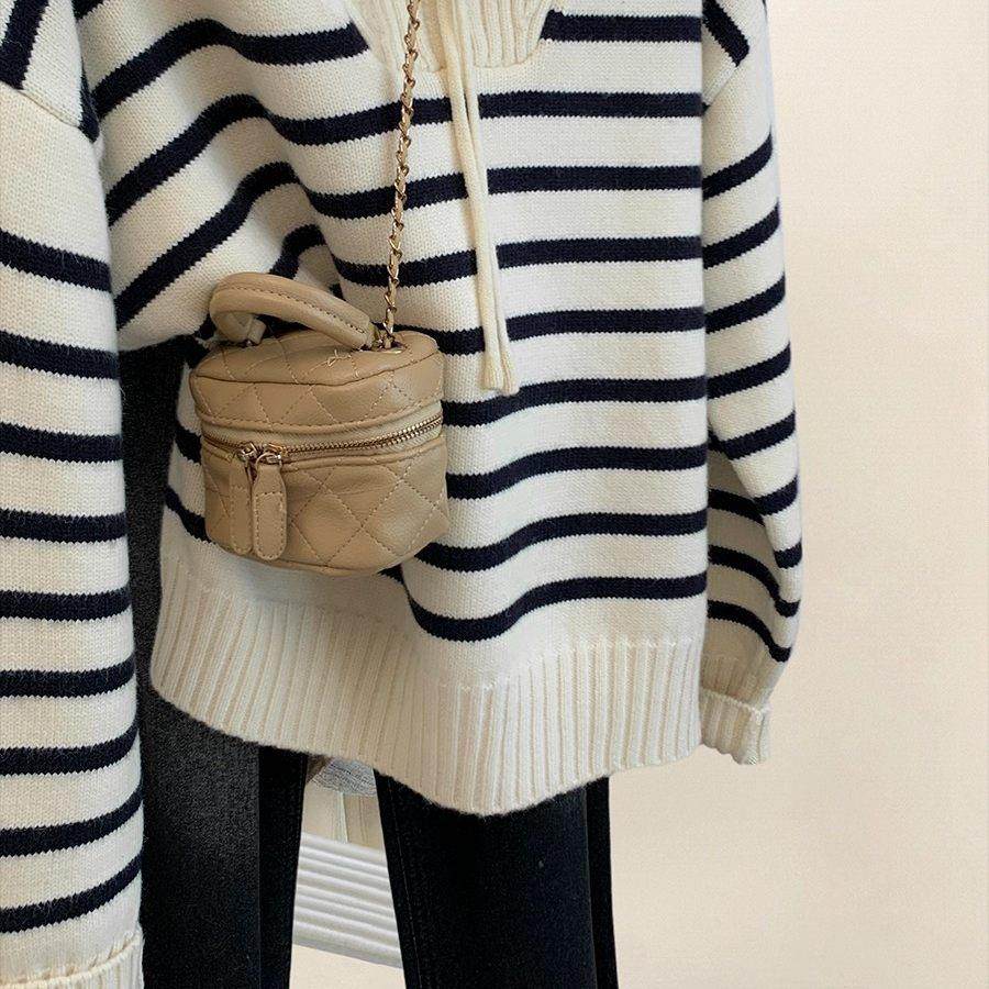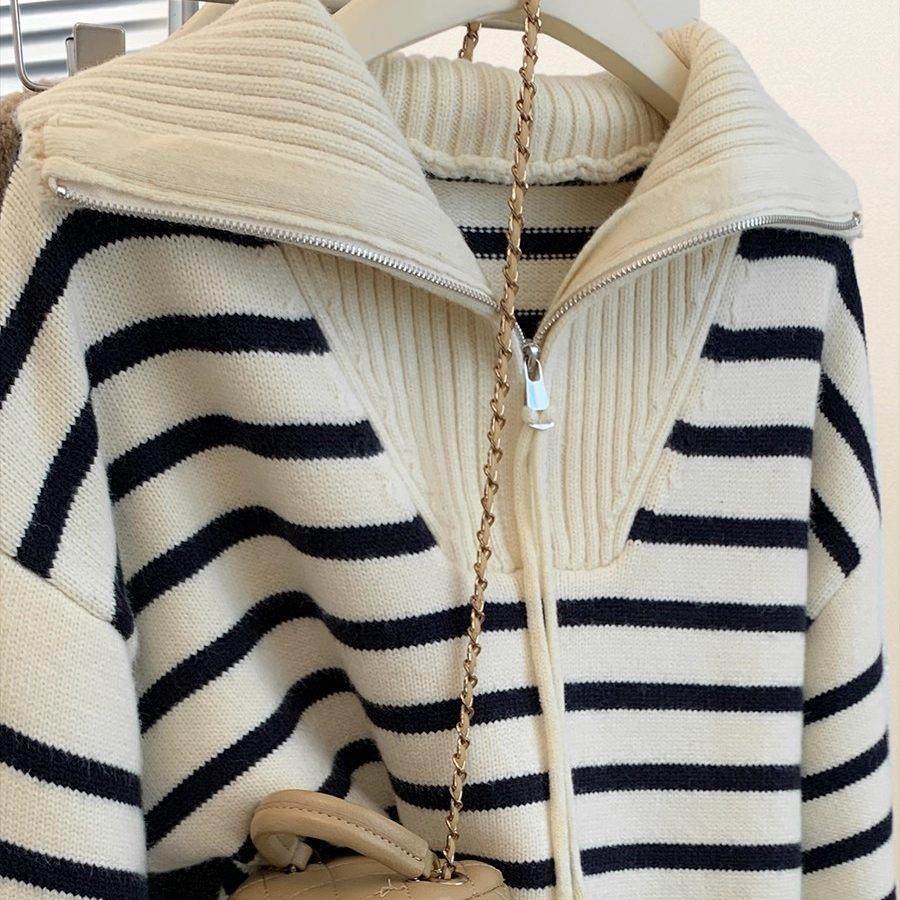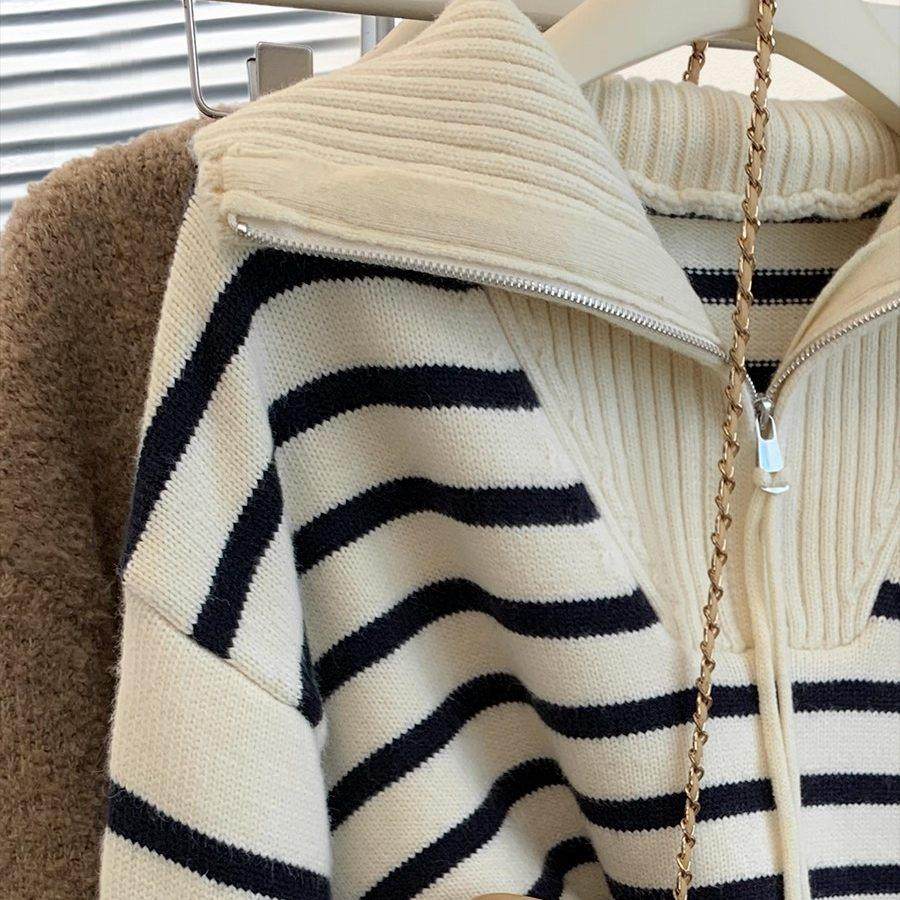 首页> 女装> 法国Rixo Rane ?浣熊绒条纹半拉链针织毛衣女秋冬季翻领加厚上衣