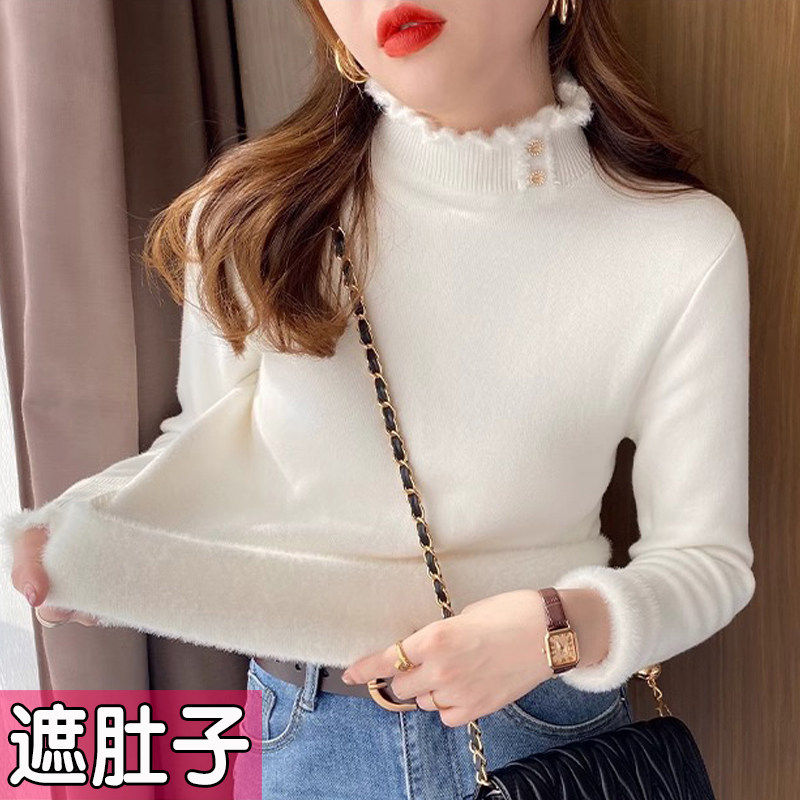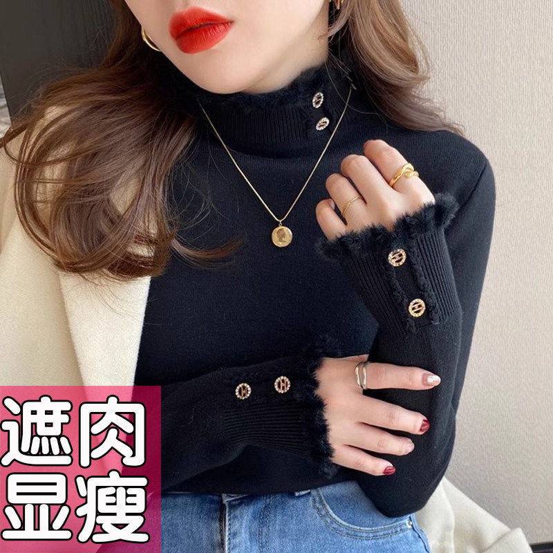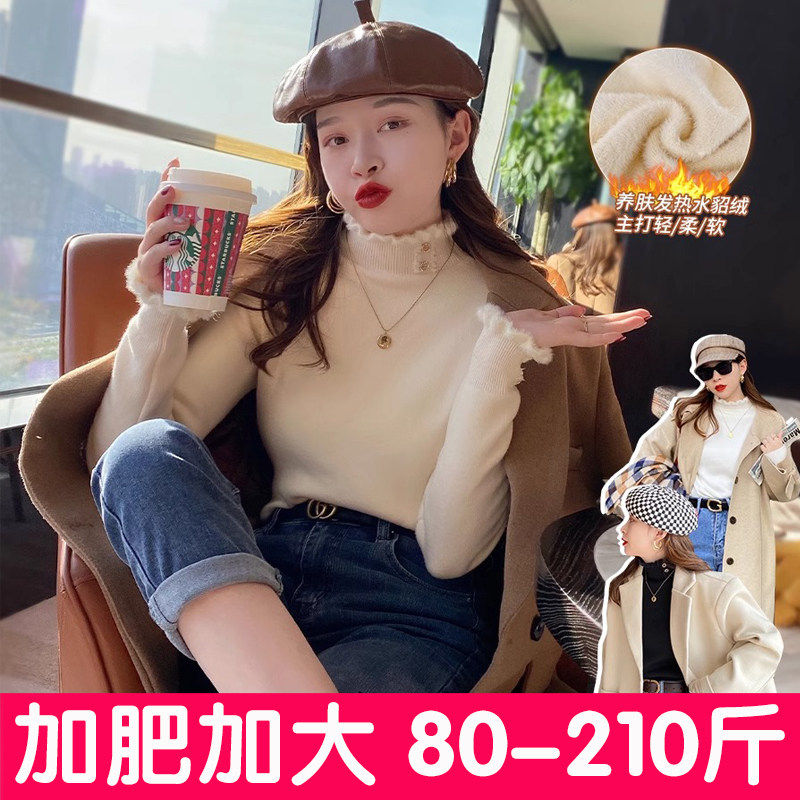 大码加绒加厚毛衣女2025新款秋冬内搭一体绒半高领打底衫上衣胖mm