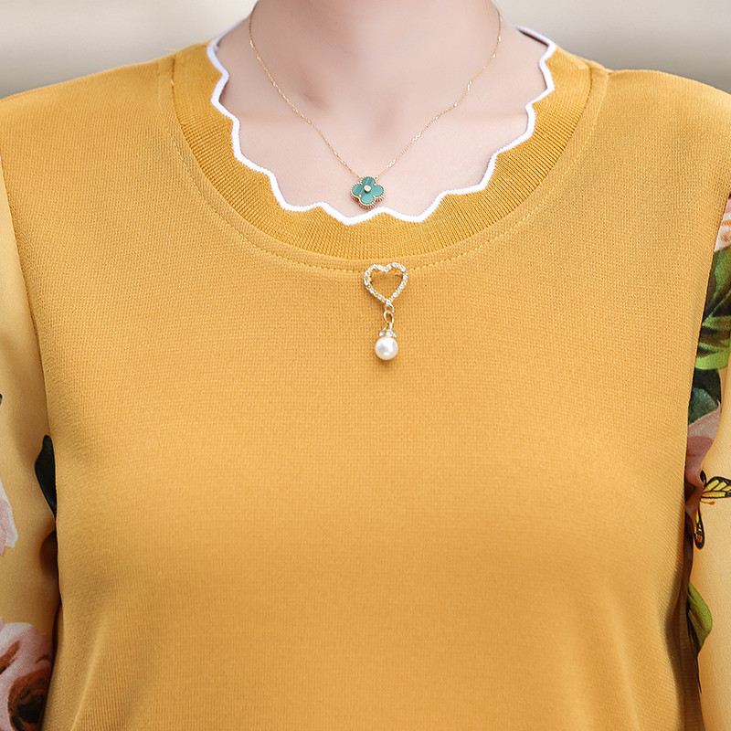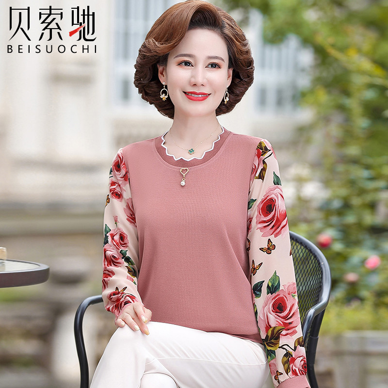 新款妈妈打底衫春装洋气中年女装小衫中老年春秋T恤长袖上衣套装