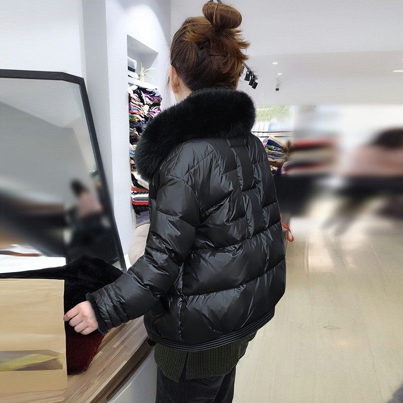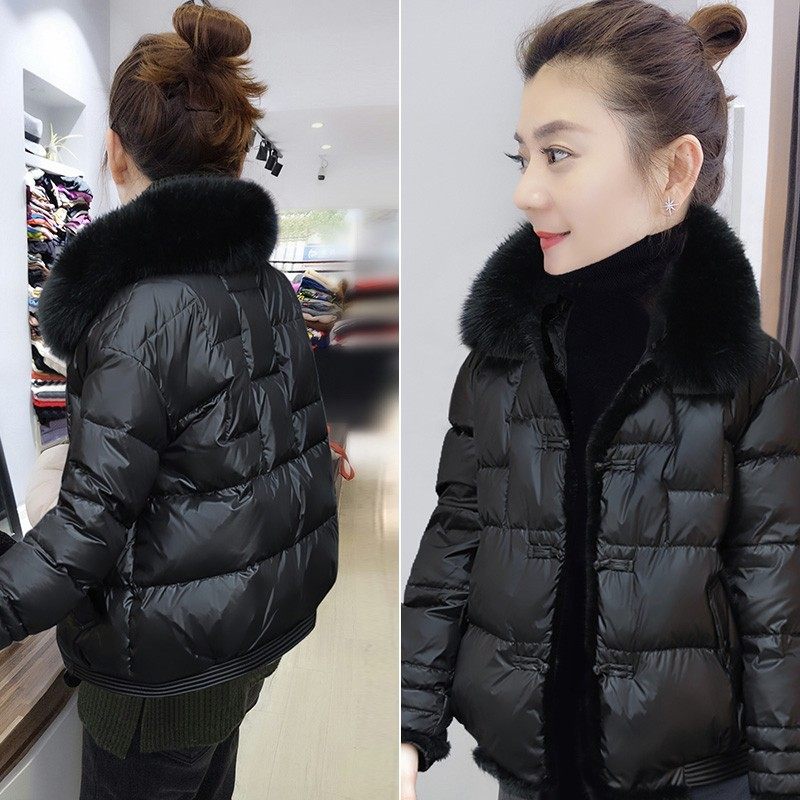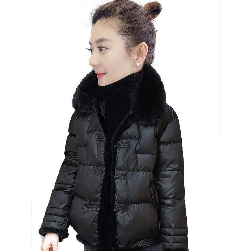 黑色毛领盘扣轻薄小个子短款羽绒服外套欧洲站冬装女2023新款欧货