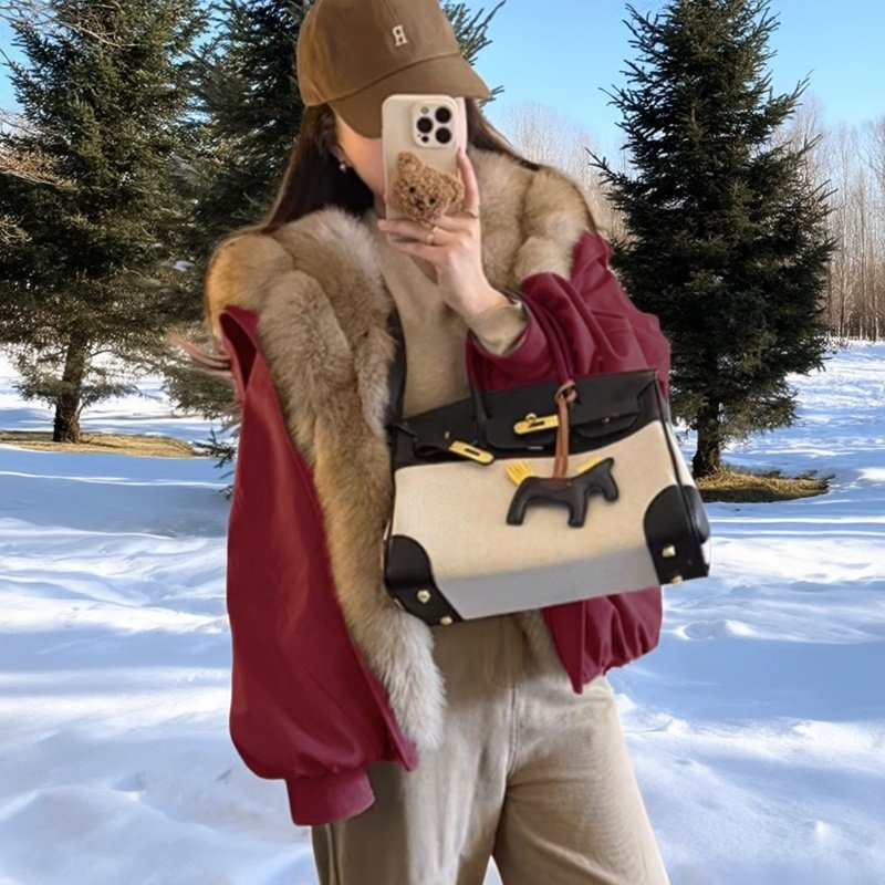 过年装高端女装正品高档仿狐狸毛皮草千金毛毛外套厚羽绒服派克服