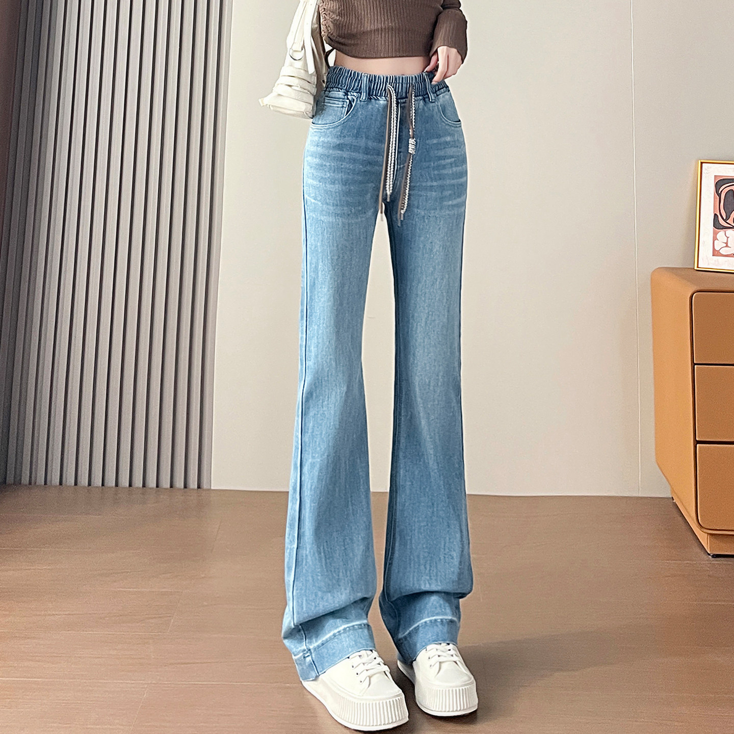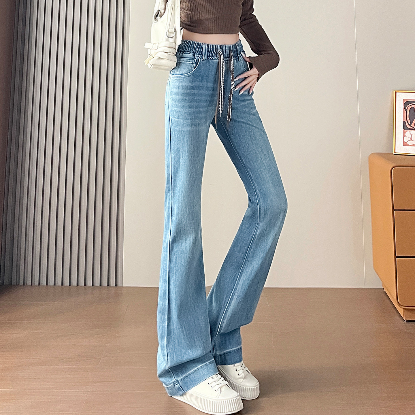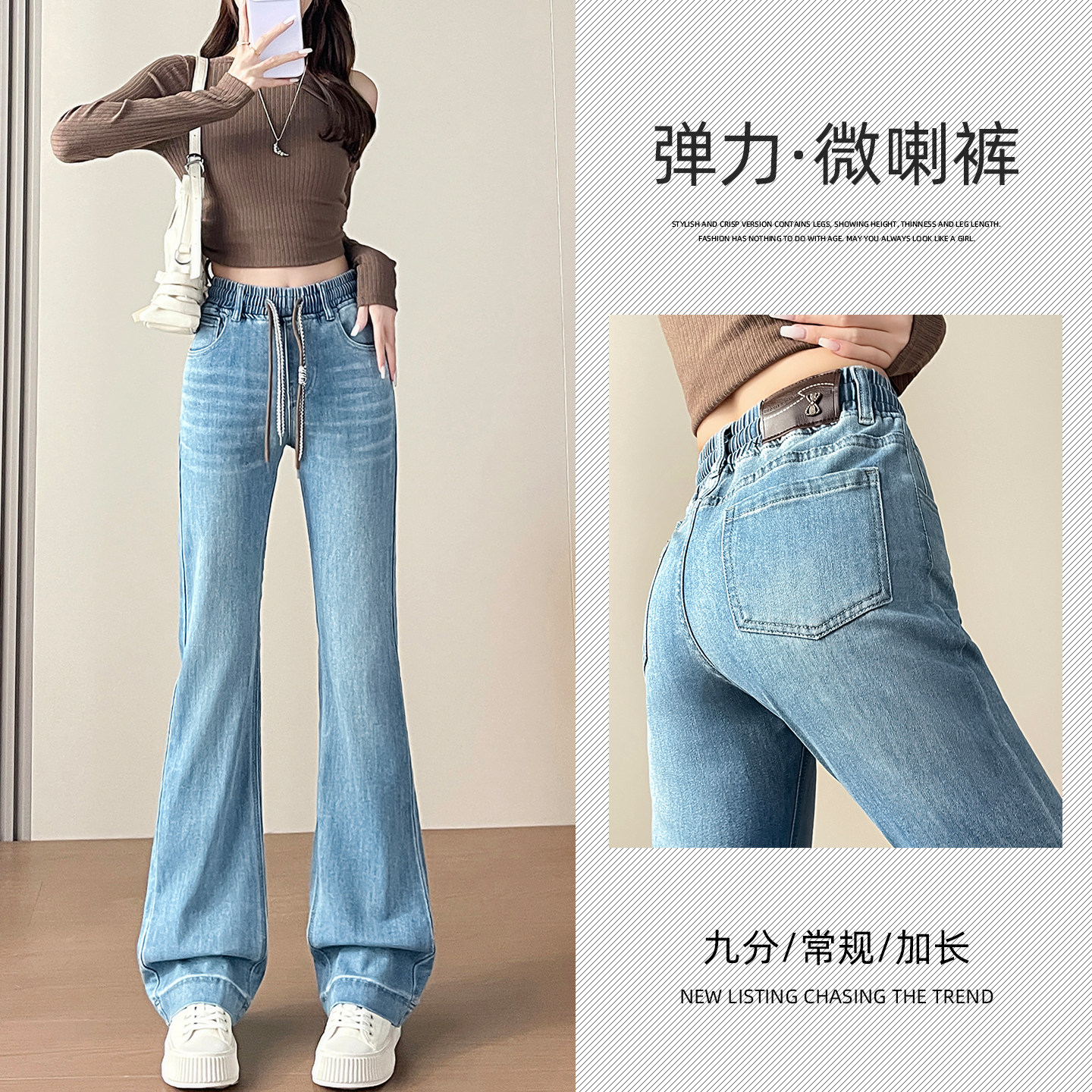首页> 女装> 加长微喇牛仔裤女春秋季2026新款高腰垂感显瘦小个子喇叭马蹄裤子
