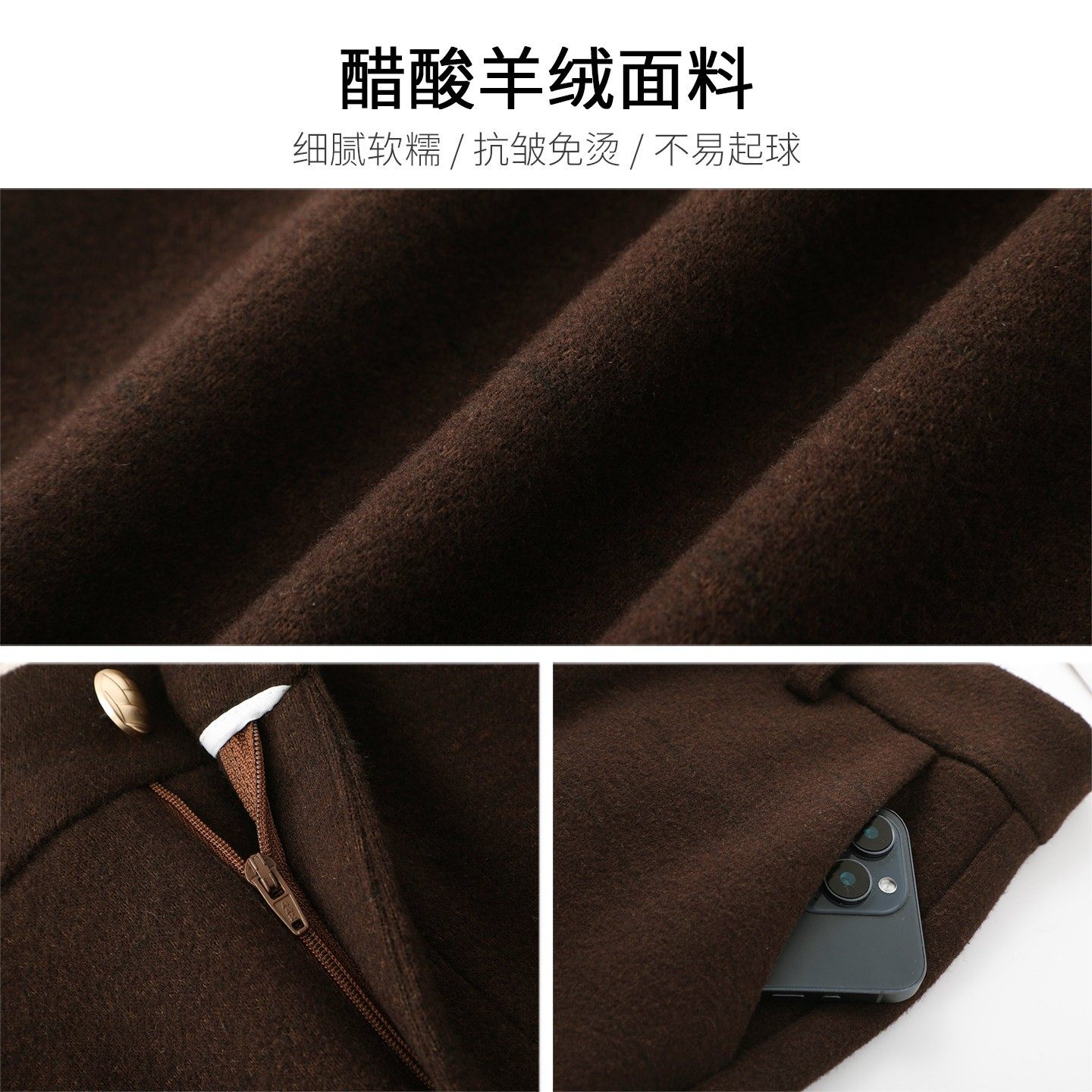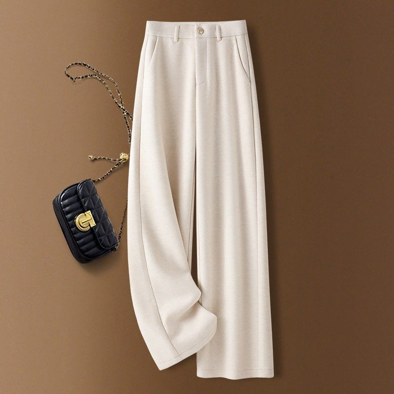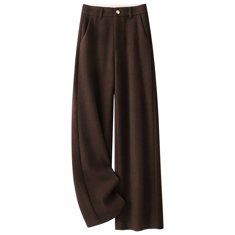 高端咖色羊毛呢阔腿裤女秋冬2025新款宽松显瘦加厚醋酸羊绒直筒裤