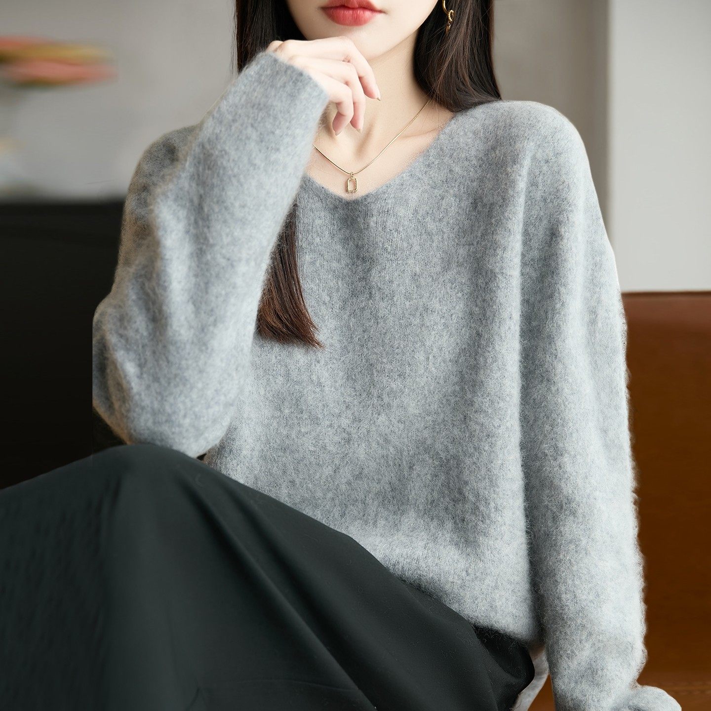 100纯羊毛拉毛针织打底衫女2026新款洋气大码女装上衣秋冬毛衣