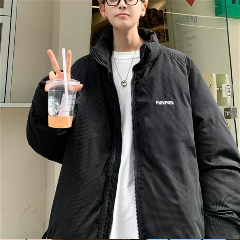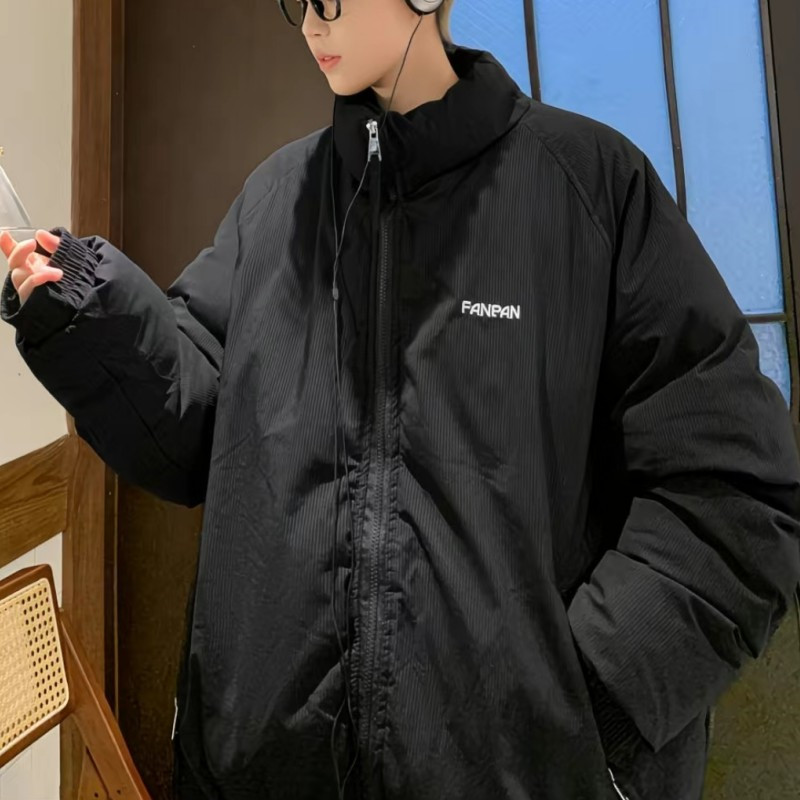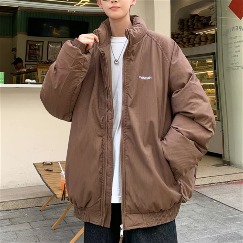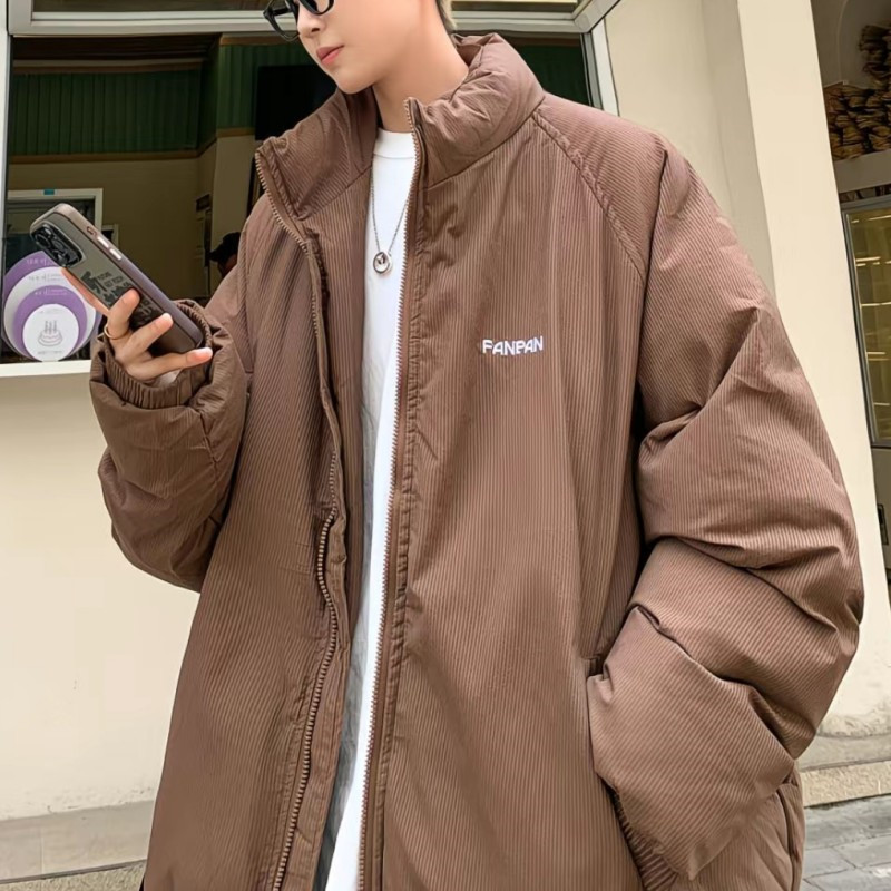 25B10A4美式立领肌理感条纹棉服冬季宽松休闲加厚面包服棉衣外套