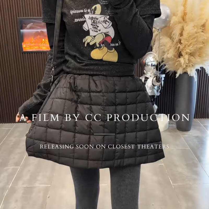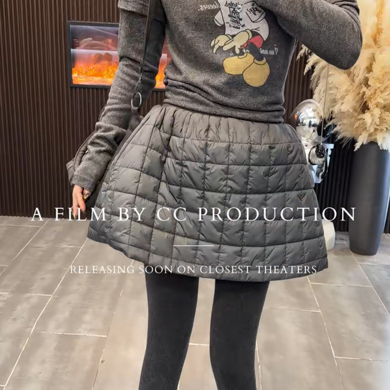 韩系简约时尚休闲2025秋冬夹棉菱格半身裙高腰A字蓬蓬裙减龄短裙