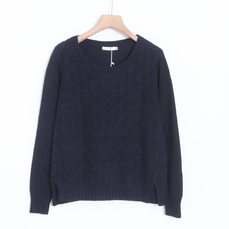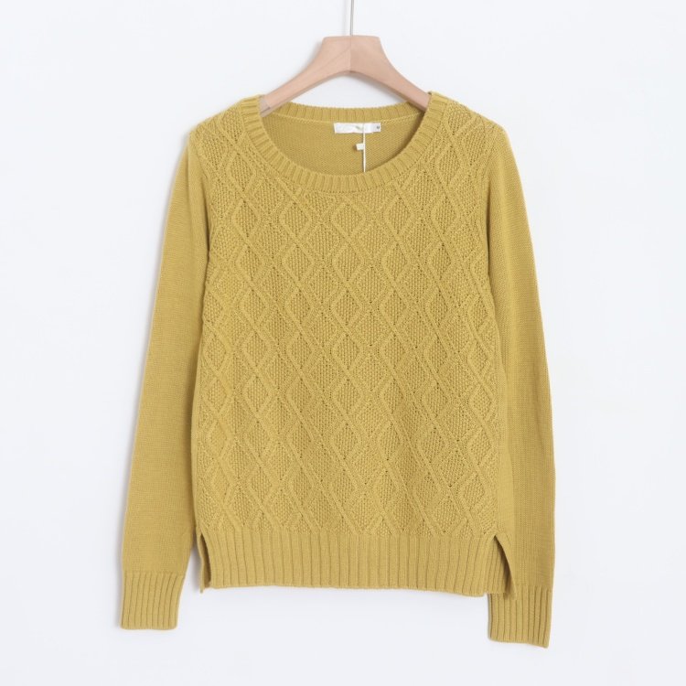 首页> 女装> D08015女装新款客供料圆领套头弹性好好搭配女菱格简洁长袖毛衣