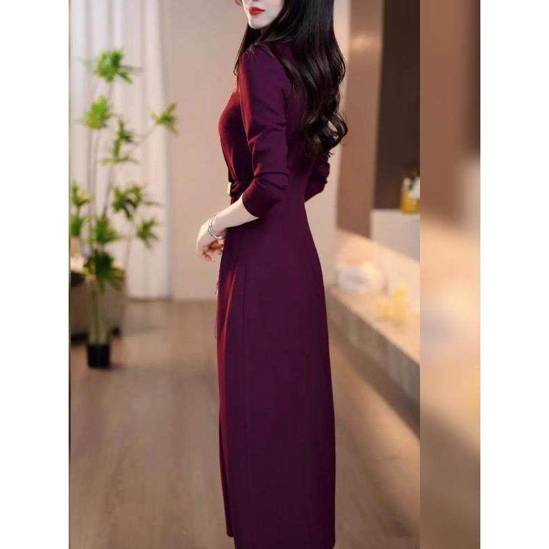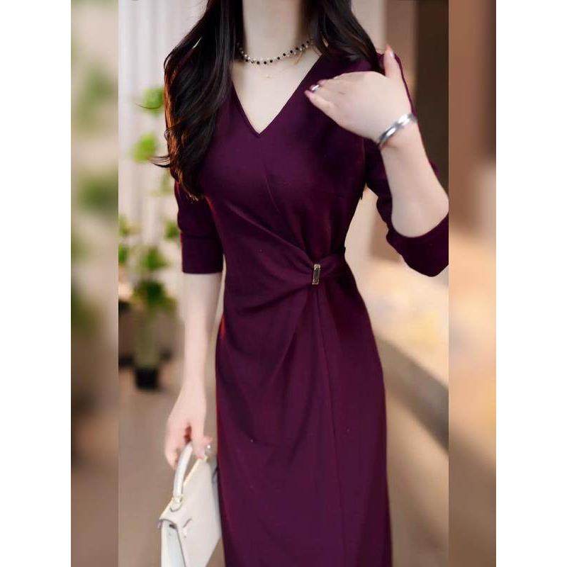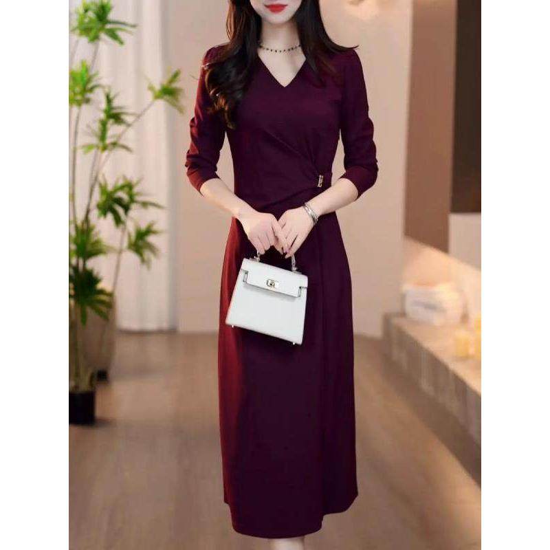 首页> 女装> Ocnltiy超好看红色连衣裙女新款秋季v领显瘦平时可穿婚宴装a字裙
