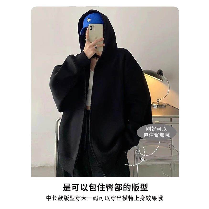 黑色卫衣外套女2025新款秋冬季宽松连帽开衫美式拉炼加绒加厚上衣