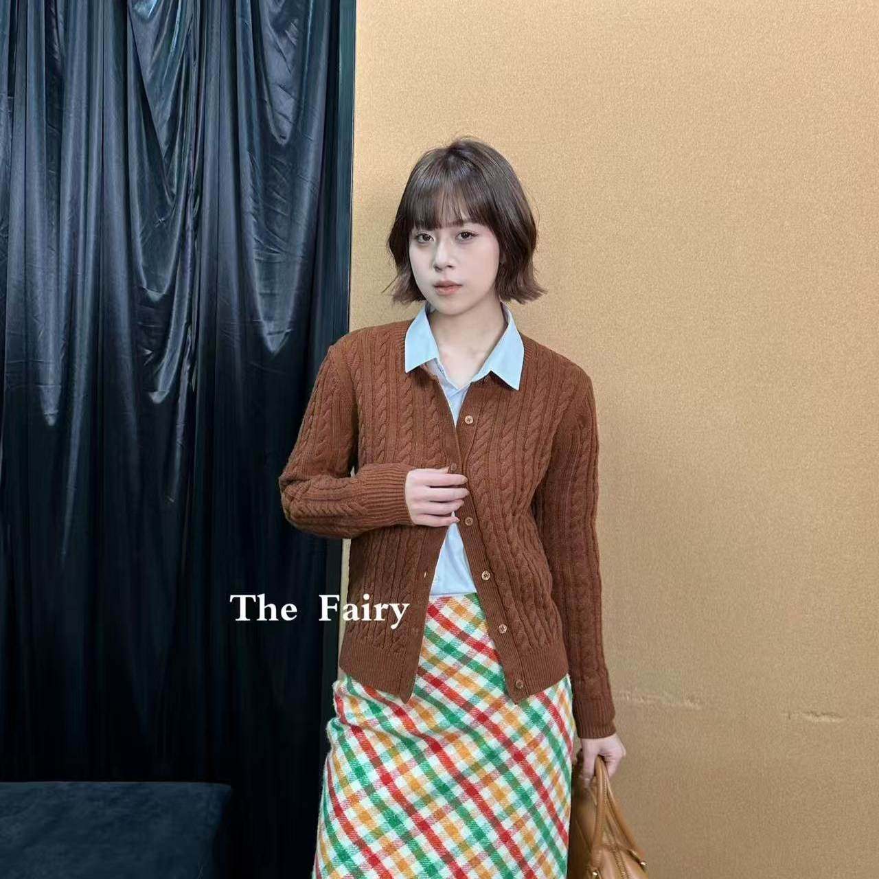 好漂亮咖啡色麻花羊毛针织开衫外套女2026年早春新款短上衣宽松潮