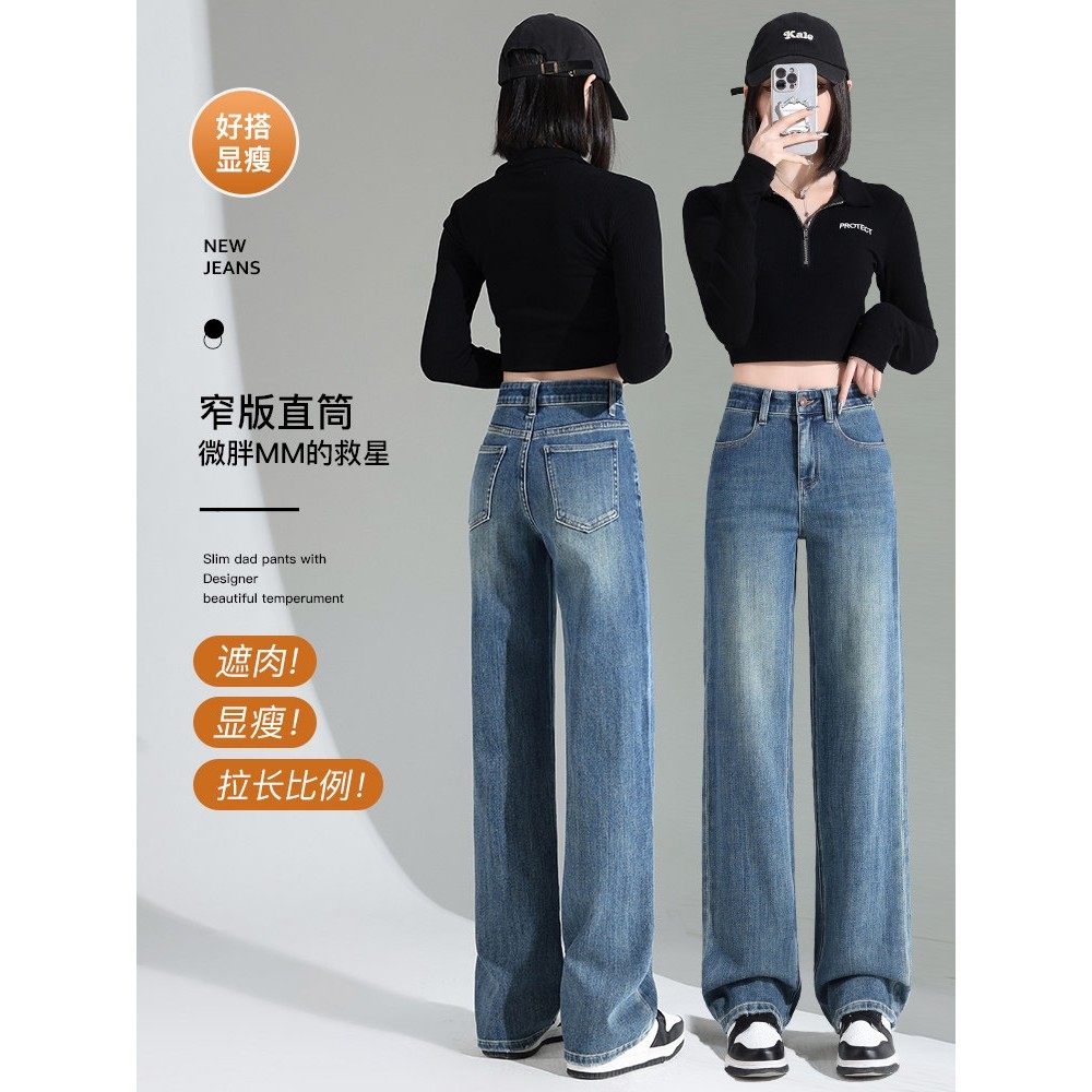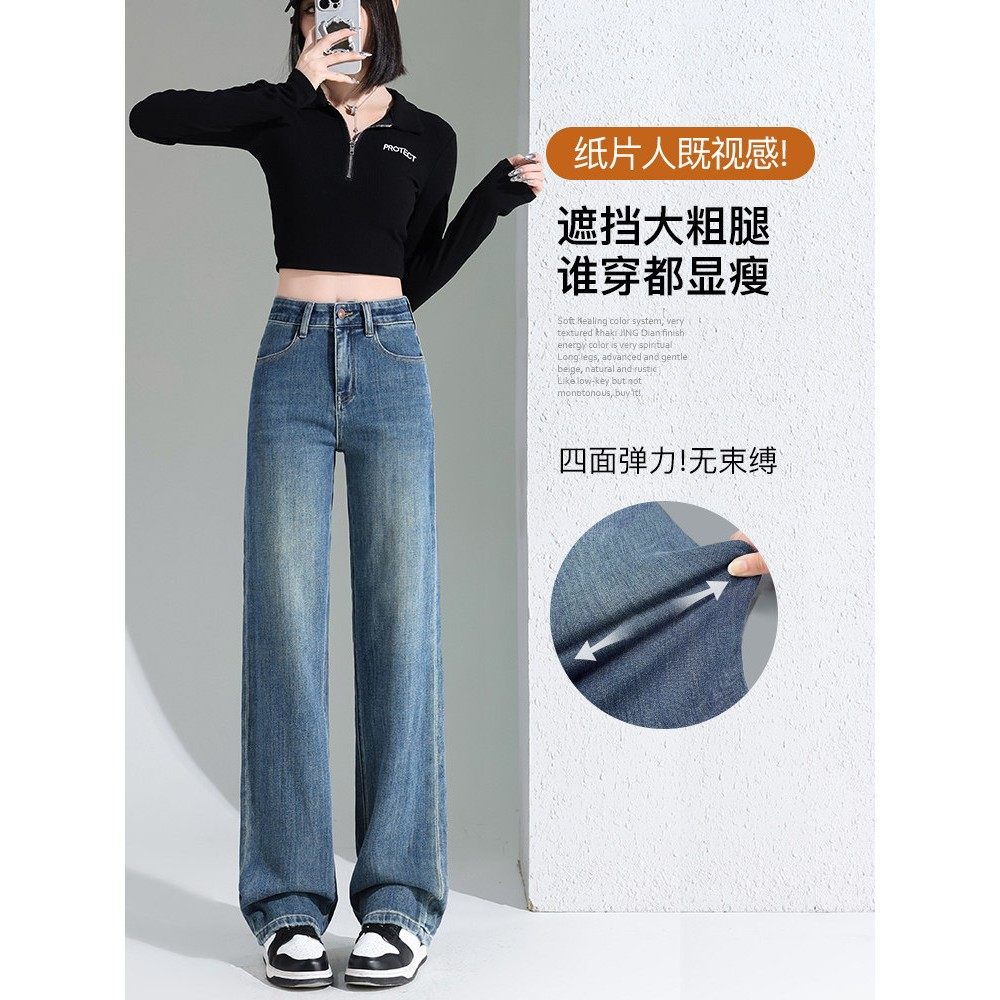 天丝醋酸直筒牛仔裤女2025新款夏季小个子高腰显瘦复古窄版阔腿裤