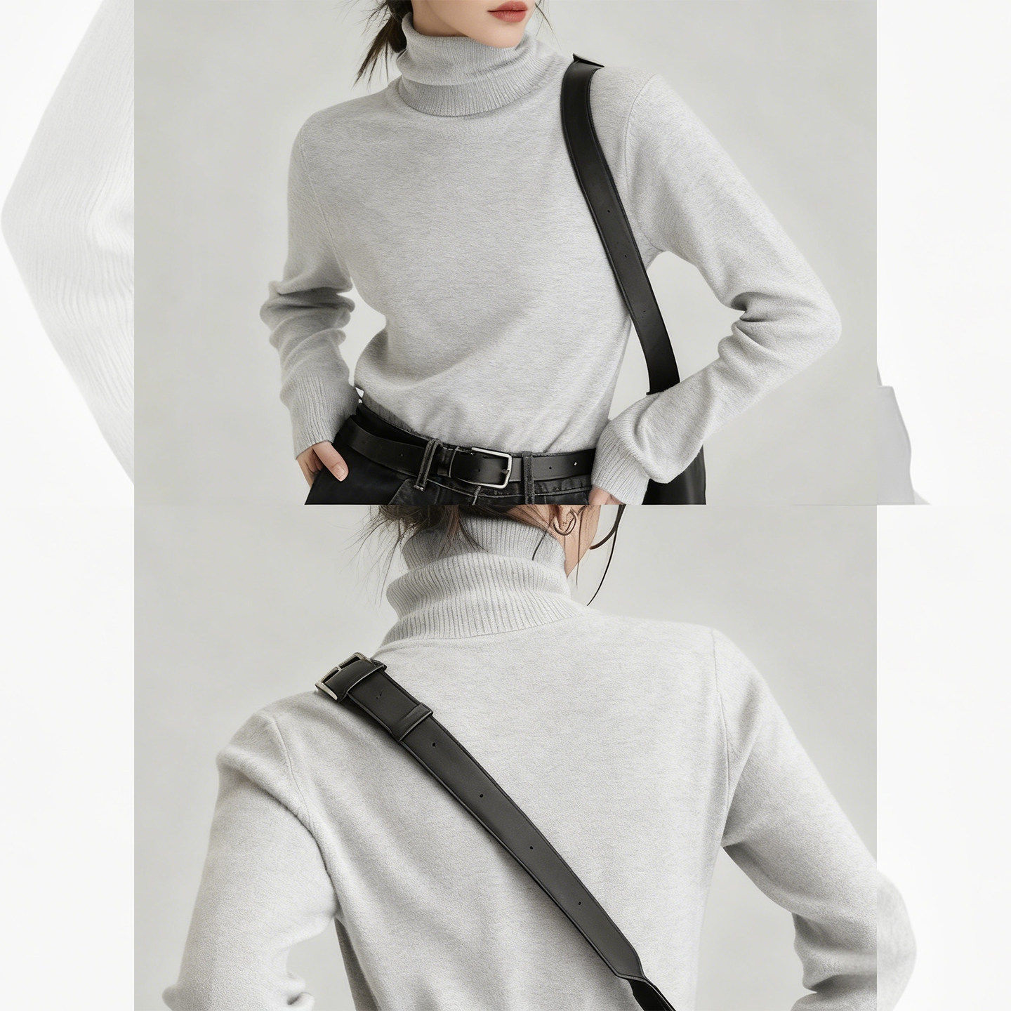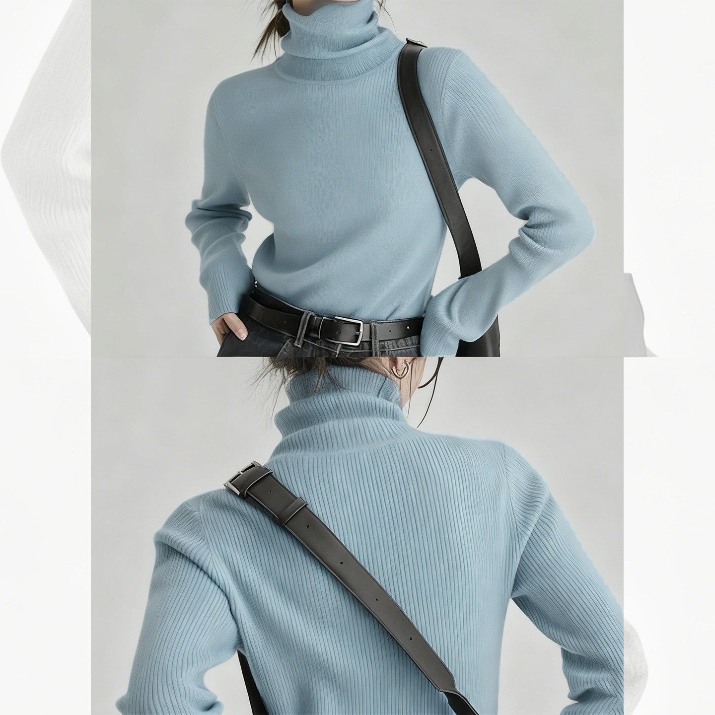蓝色堆堆领针织衫毛衣女2025新款秋冬季穿搭显瘦高领内搭打底上衣