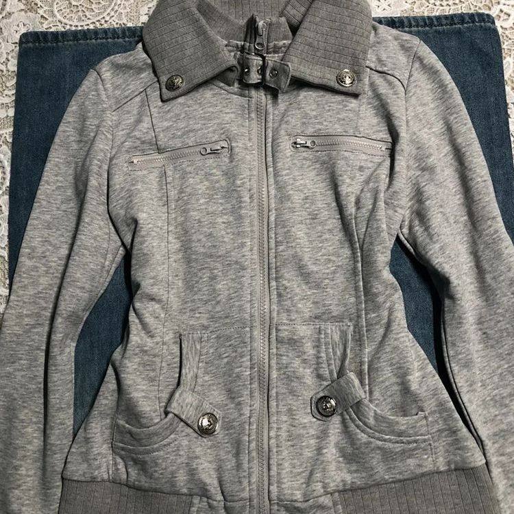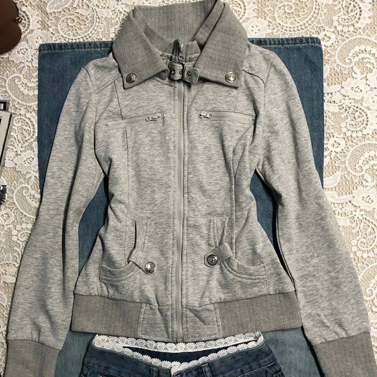 首页> 女装> 美式复古灰色工装立领夹克外套女秋季新款设计感小众显瘦长袖上衣