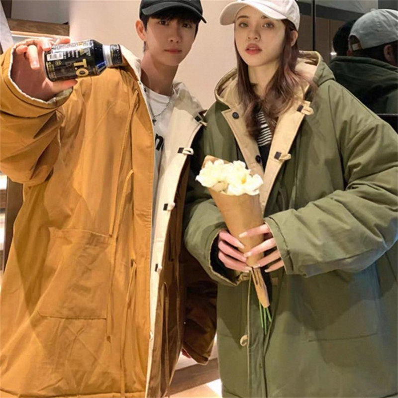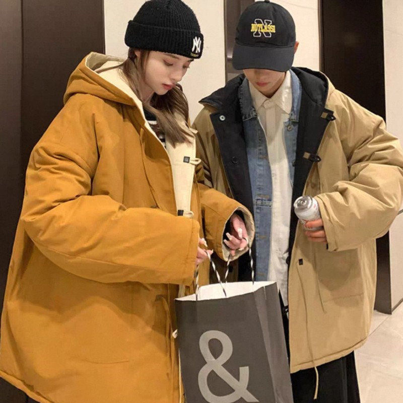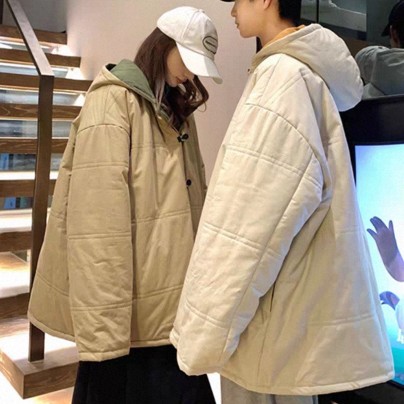 26C3D1新年新中式双面穿连帽棉衣中国风宽松保暖纽扣棉服男女外套