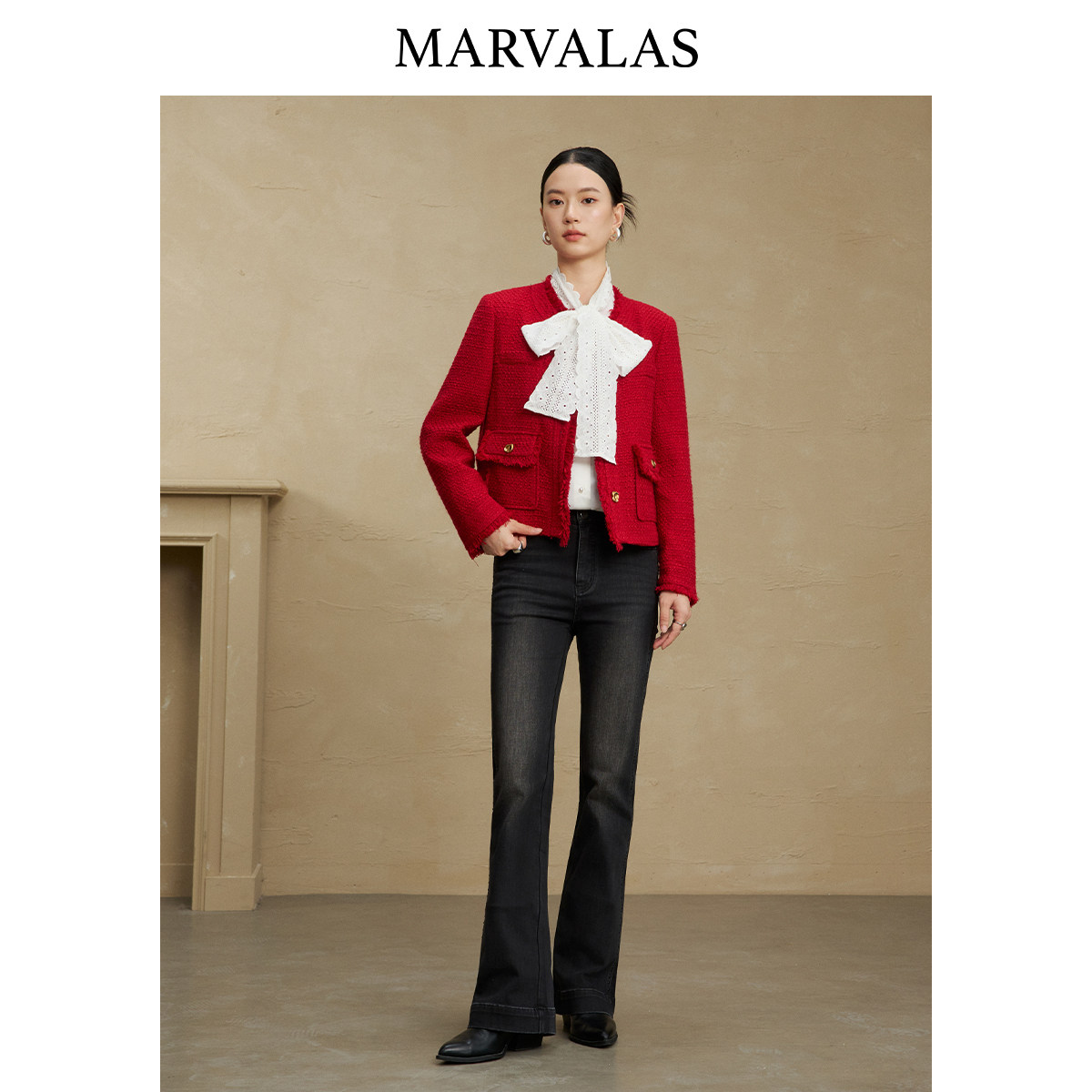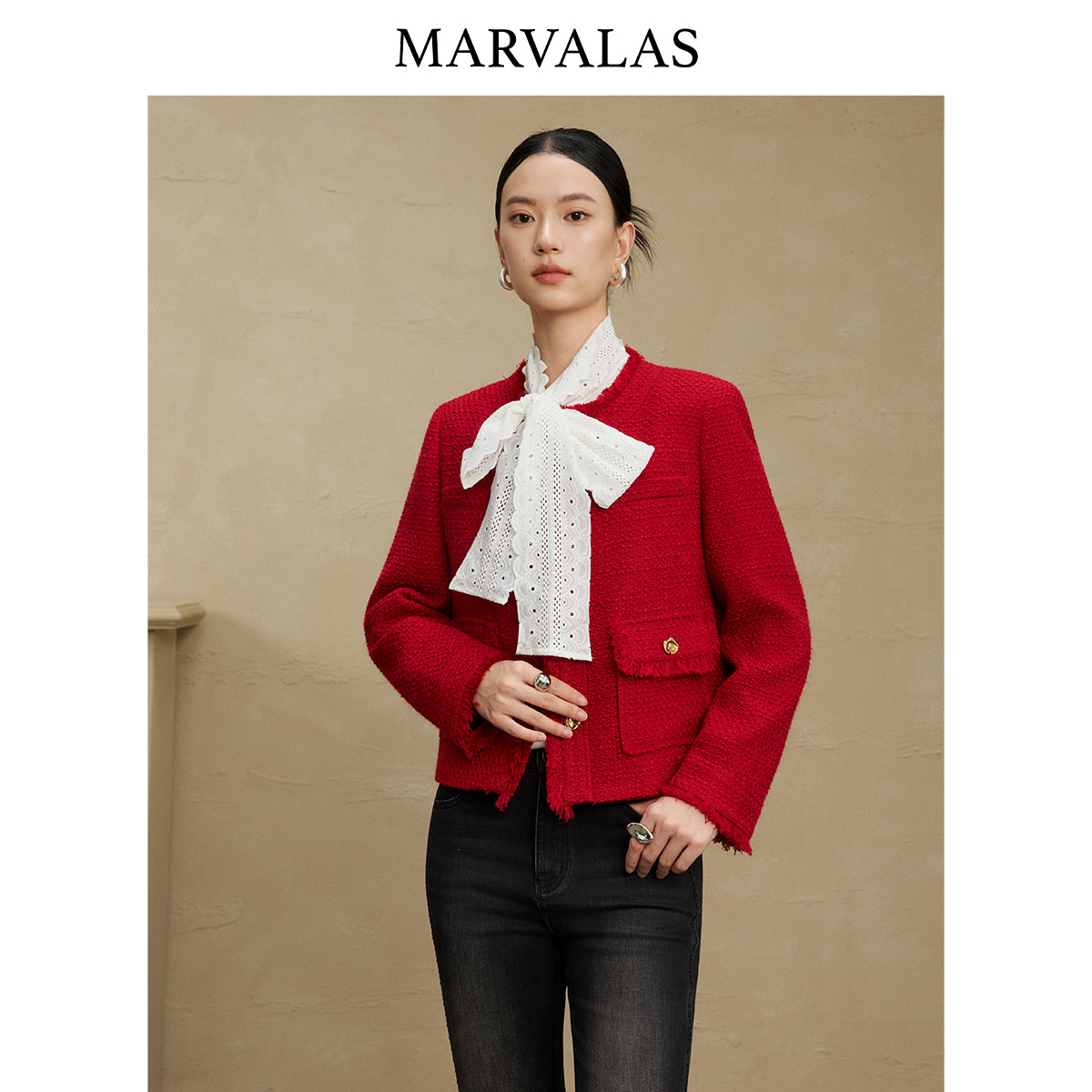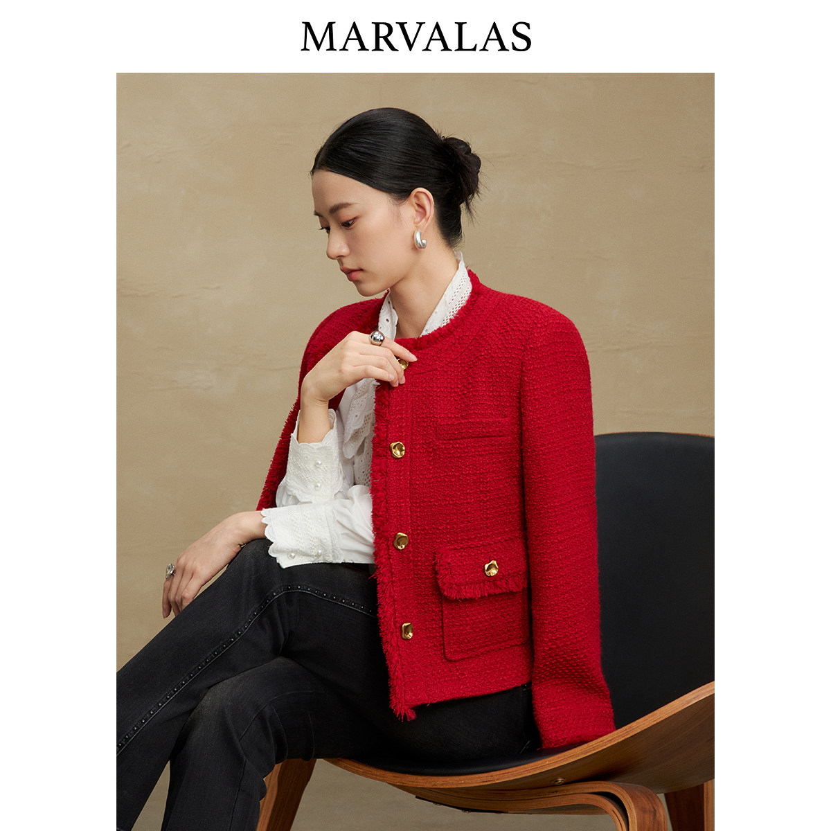 【廖廖粉丝专享】曼德诗小香风短外套2025冬季新款时尚绵羊毛混纺