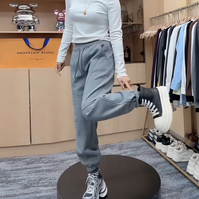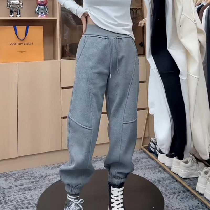 休闲哈伦裤女秋冬新款宽松百搭束脚加绒2025高腰保暖显瘦长卫裤