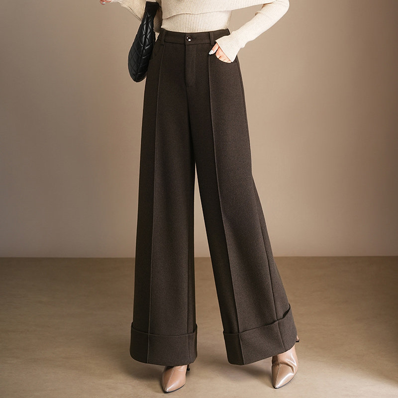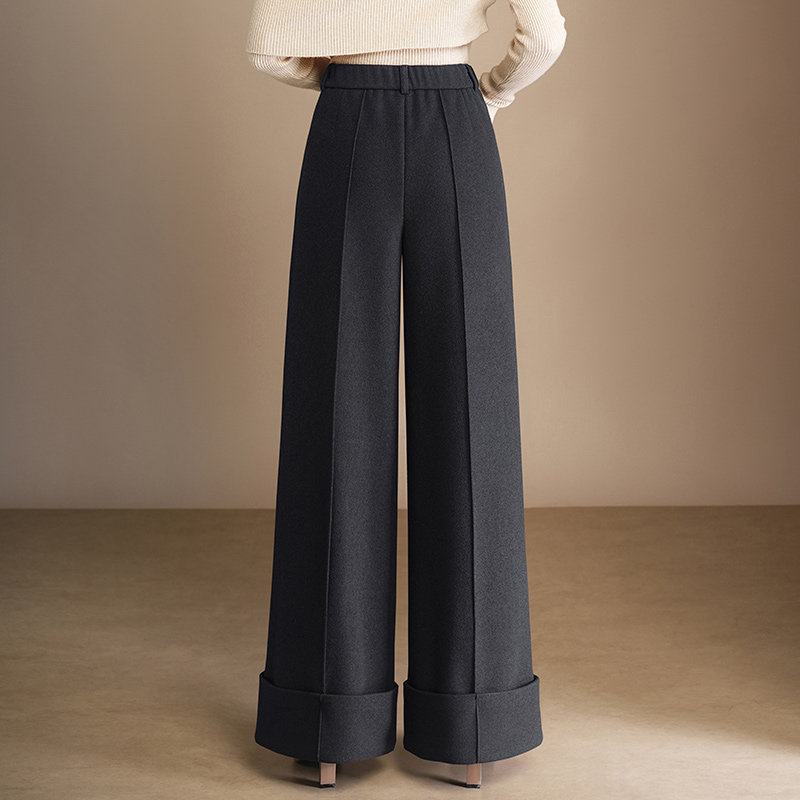 首页> 女装> 2025秋冬新款加厚羊毛呢阔腿裤女高腰宽松通勤卷边长裤时尚休闲裤
