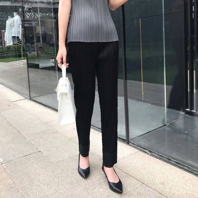 首页> 女装> 2025新款褶皱裤灰色纸片人显瘦直筒裤日系开叉九分铅笔小脚裤子女