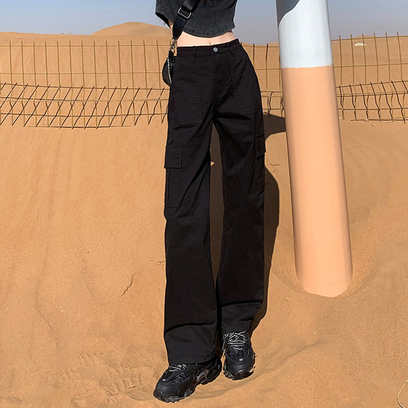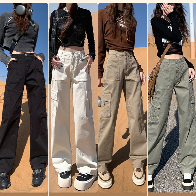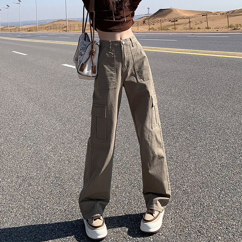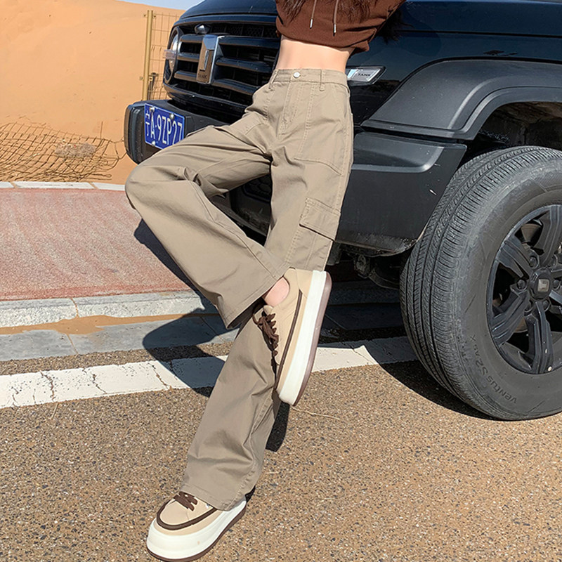 美式窄版工装休闲裤女小个子宽松显高显瘦高腰百搭洋气小众直筒裤