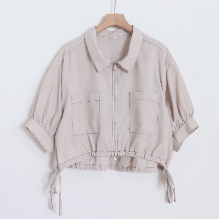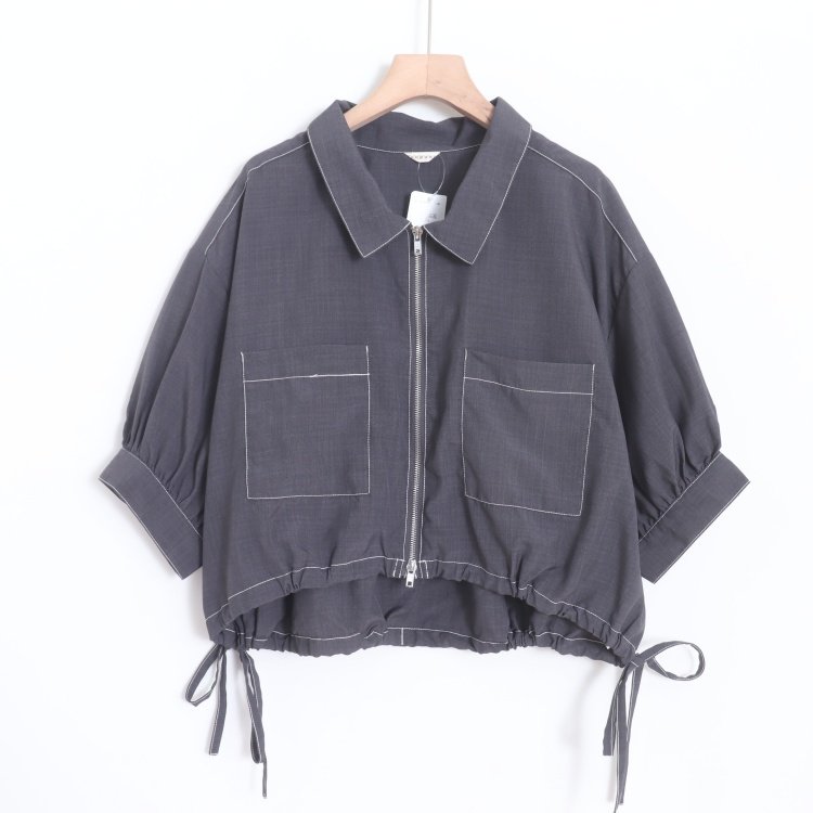 首页> 女装> D11005日单新款双头拉链宽松休闲下摆抽绳系带女纯色大码短袖衬衫