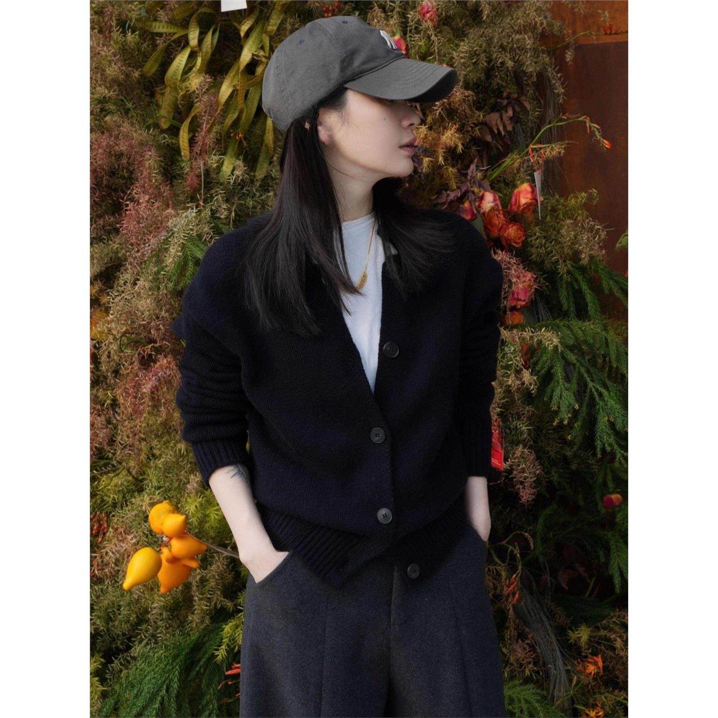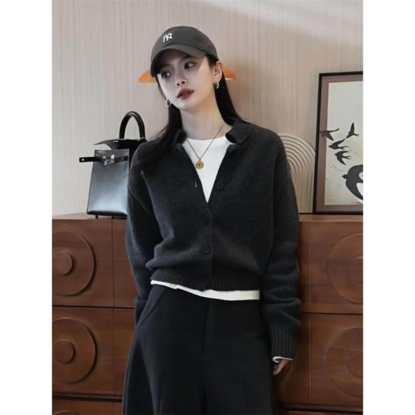 老钱风羊毛开衫女2025秋冬款设计感卡腰显瘦毛衣外套软糯针织上衣
