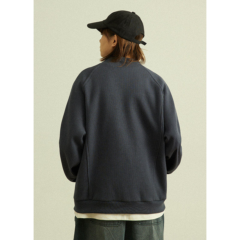 日系复古开衫卫衣 中性男女同款咖啡色纯色圆领长袖外套
