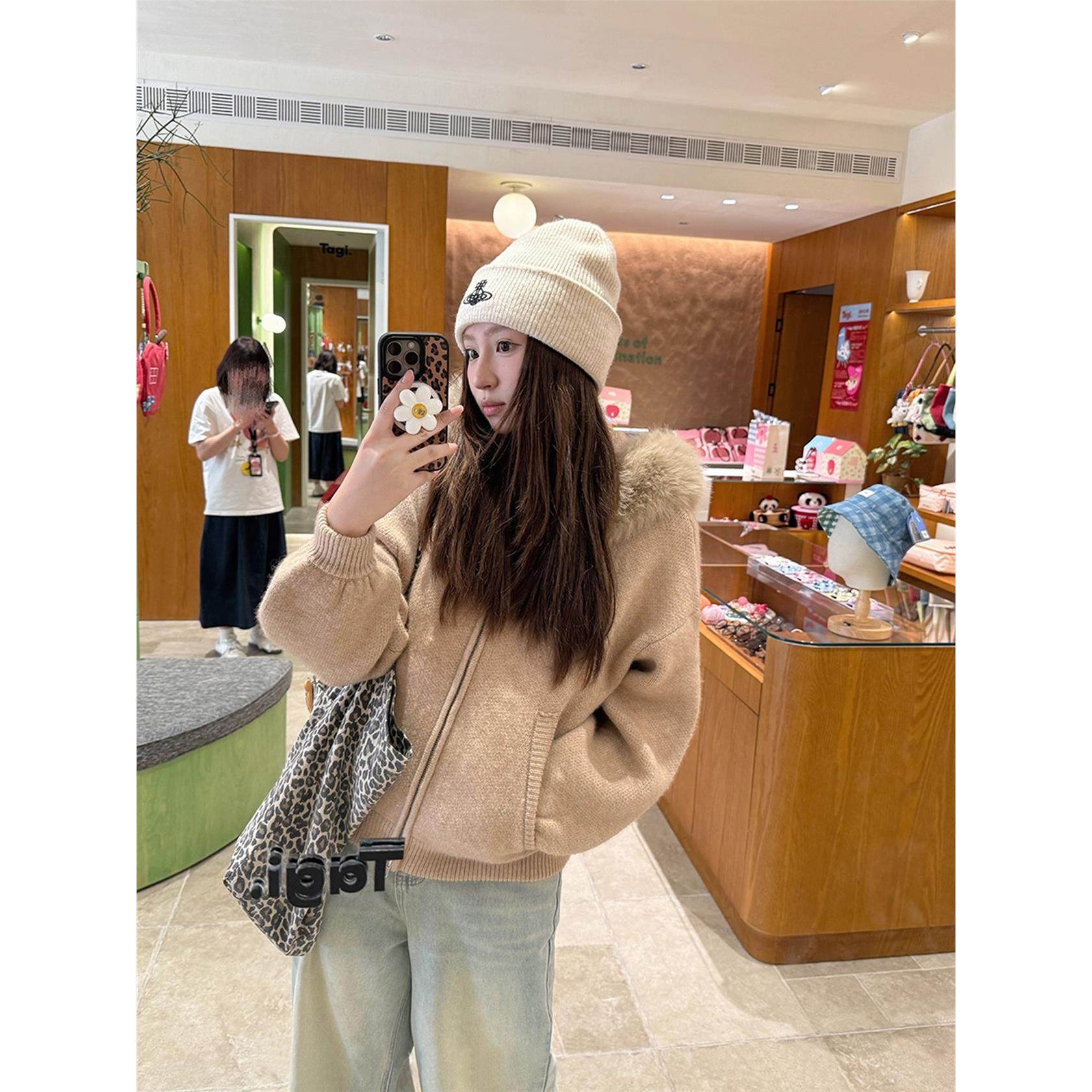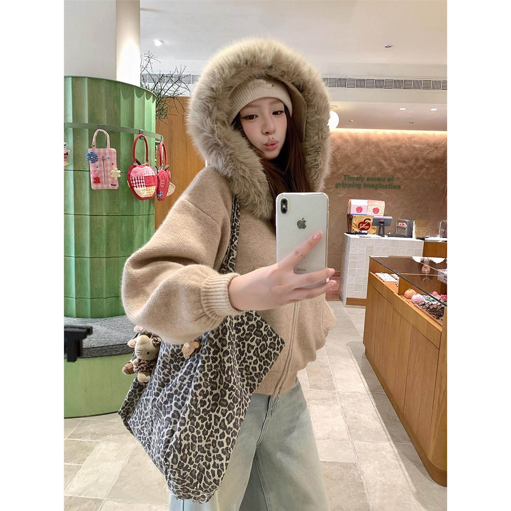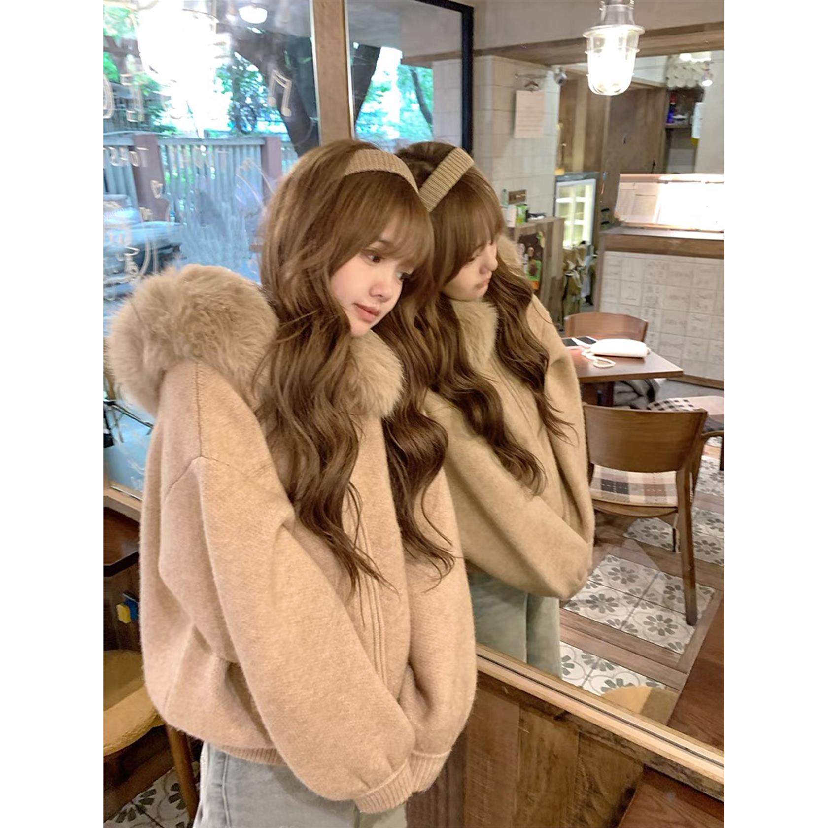 大毛领毛衣女2025新款秋冬季加厚宽松慵懒风保暖连帽针织开衫外套