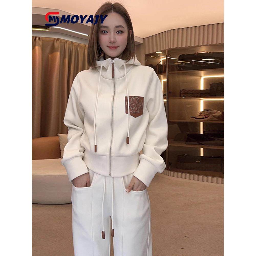 MOYAJY品牌加绒套装女冬季新款时尚减龄连帽外套休闲运动裤两件套